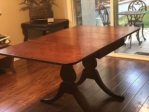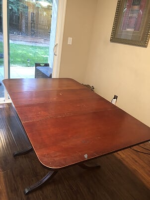 Description This dining table has cabriole legs ending in pad feet. The feet have a wooden carved claw on them, and the sides of the table turn down for easy storage. Category American Furniture Price asked 600 Is item sold? No Log in or register to post comments Photos