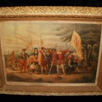 1892 Landing of Columbus Print of Painting by John van der Lyn in original wood frame 4'2" x 3'3"
