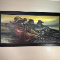 Salvador Cabrera - Oil On canvas 1969 30x60 Framed, Stretched Canvas Mexican Riders In The Desert