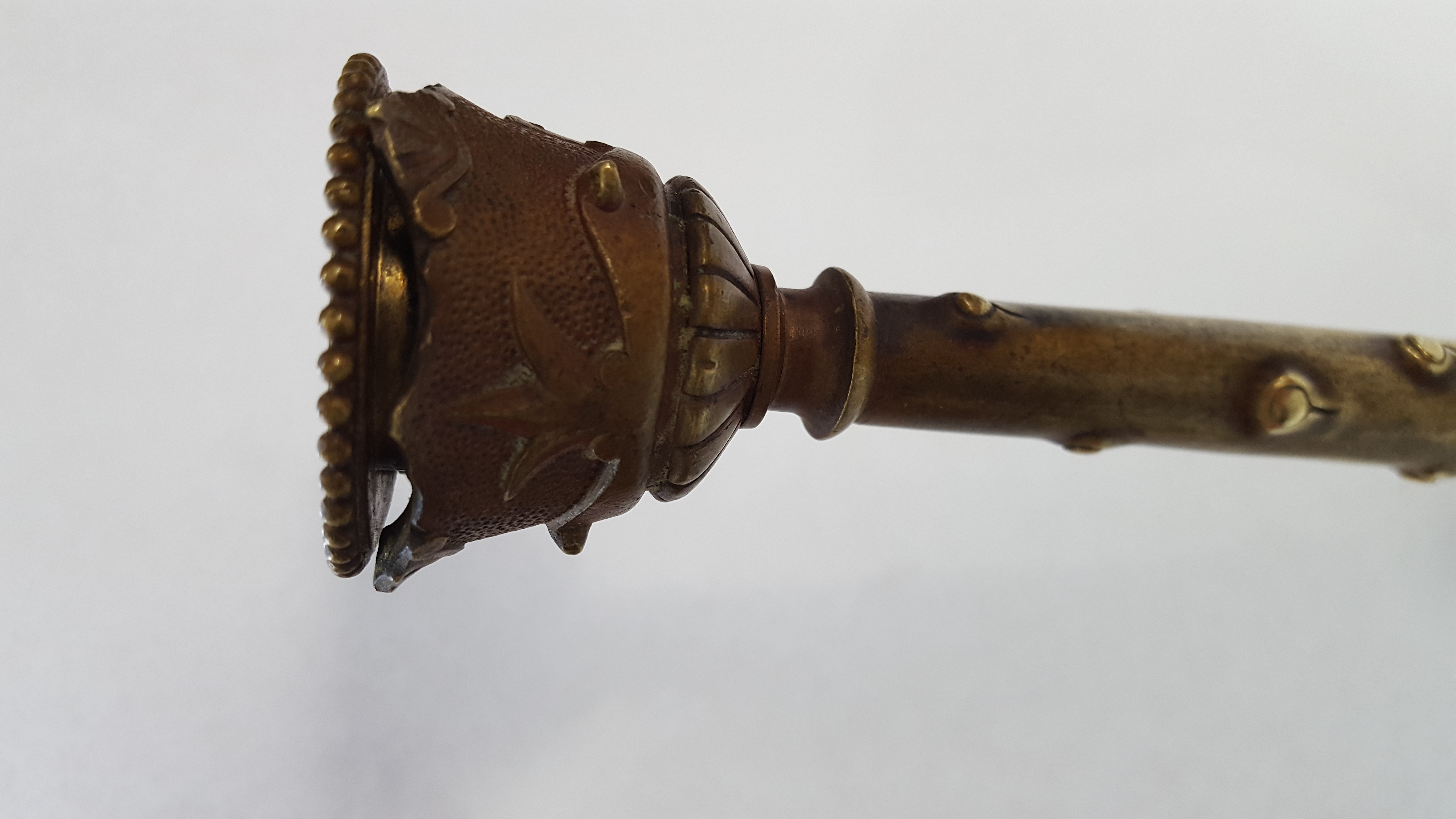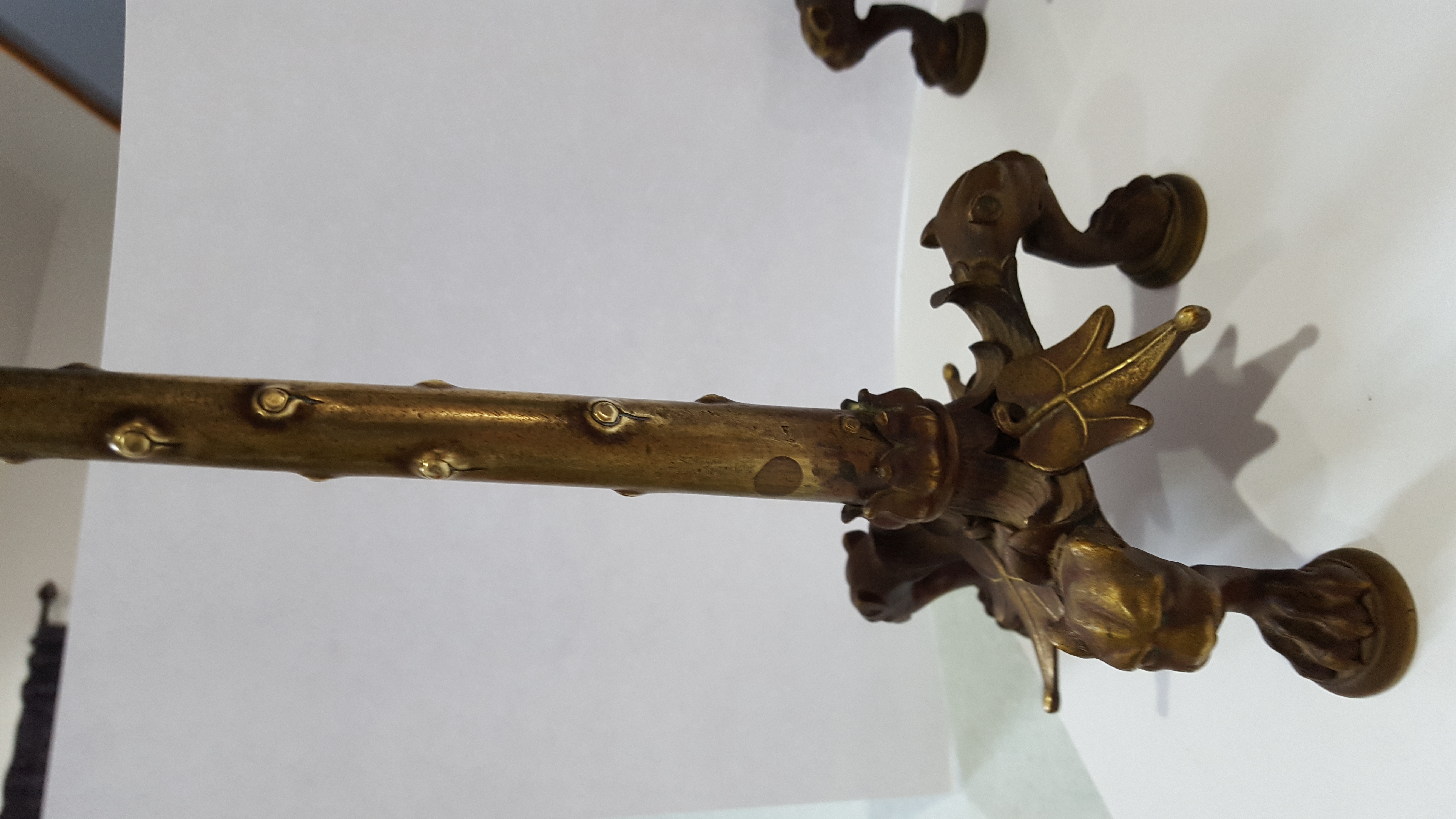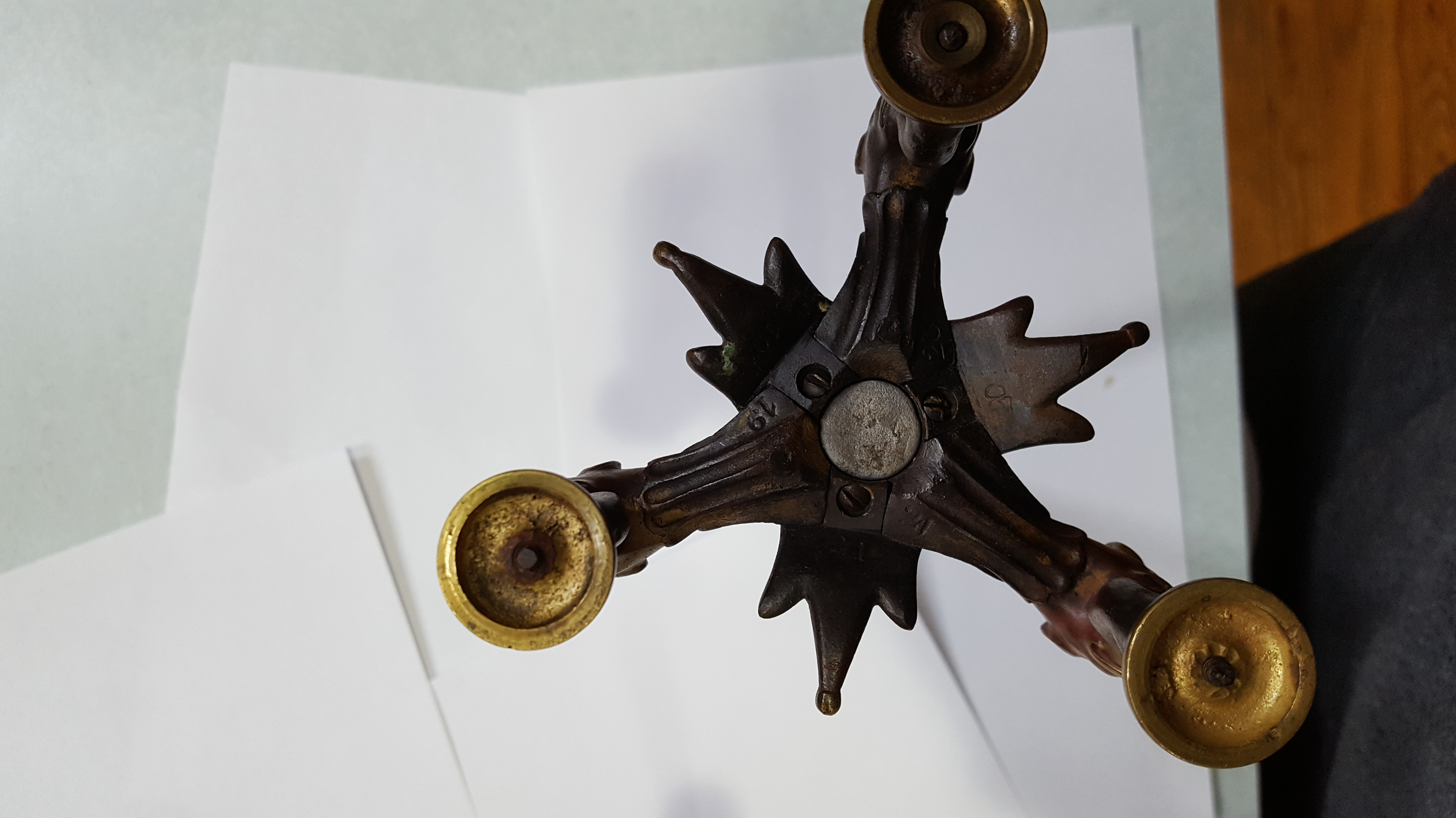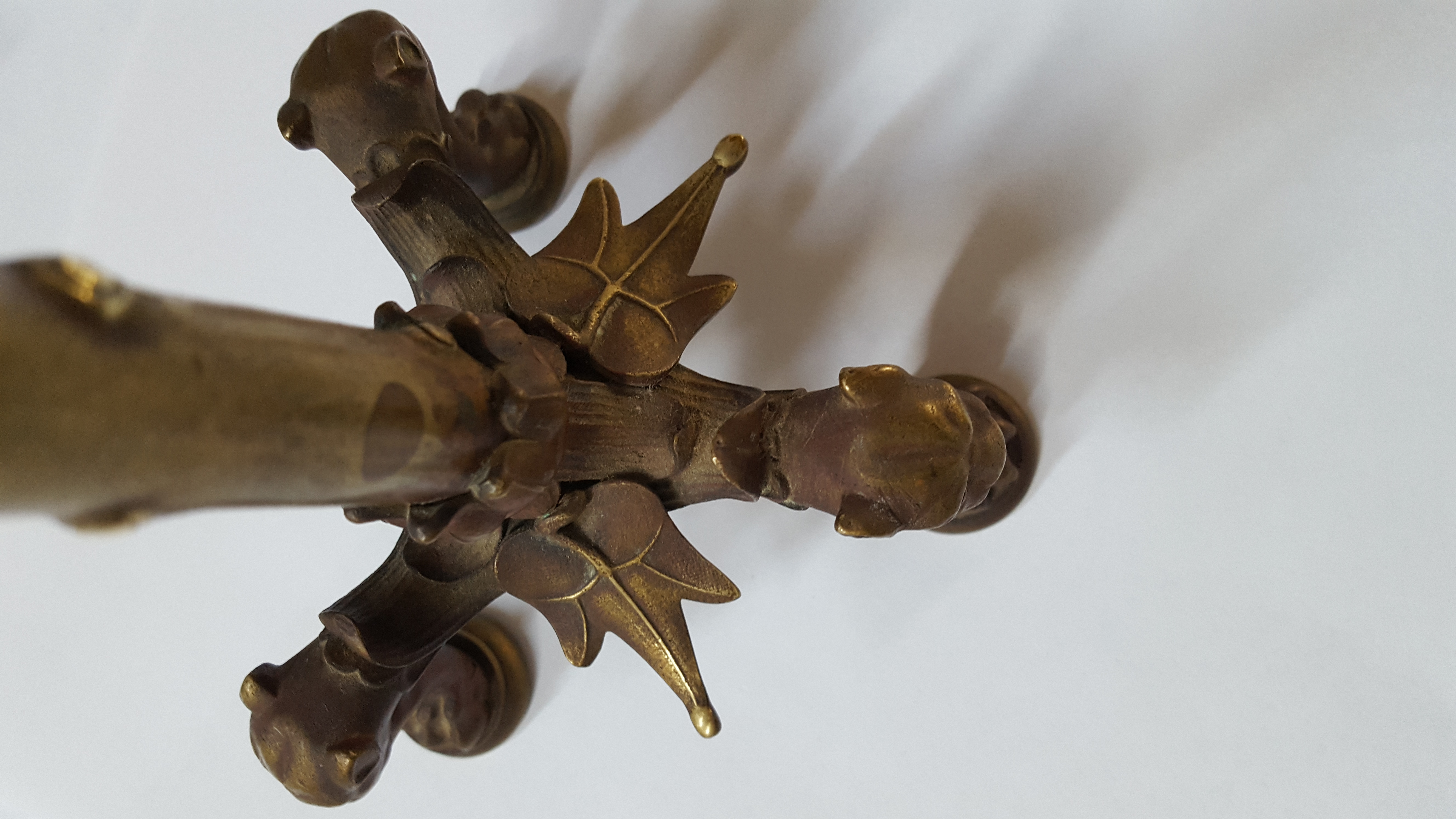 I have acquired a pair of antique candlesticks from my late grandmother who had told me they can from George wickersham. They seem to be either brass or bronze. Heavy in weight. They have what looks like a cougar head and paw as feet. The trucks of them are about 12 inches long. I see no markings except for numbers and screws that seem to be how it was assembled. If anyone has any insight on this it would be greatly appreciated. Dan.