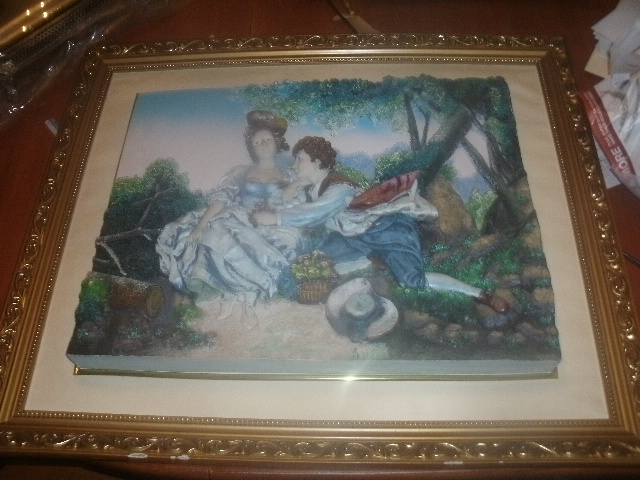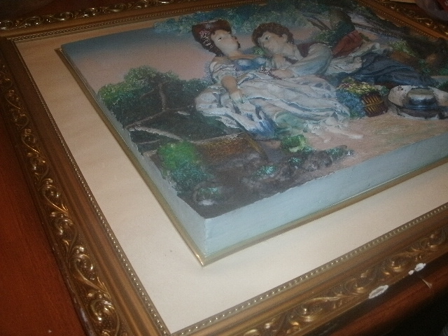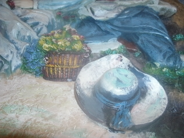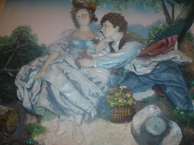bought this recently,and have searched all over this piece and cannot seem to find a signature or mark. The porcelain meissen is attached onto paper and a frame,so i cannot see the under side,and the frame is ancient itself, made of a simple piece of wood,which meissen is attached to,w/disintergrating nails and all.Does anyone have any knowledge on this piece,and what its possible value might be?It resembles some made in germany.