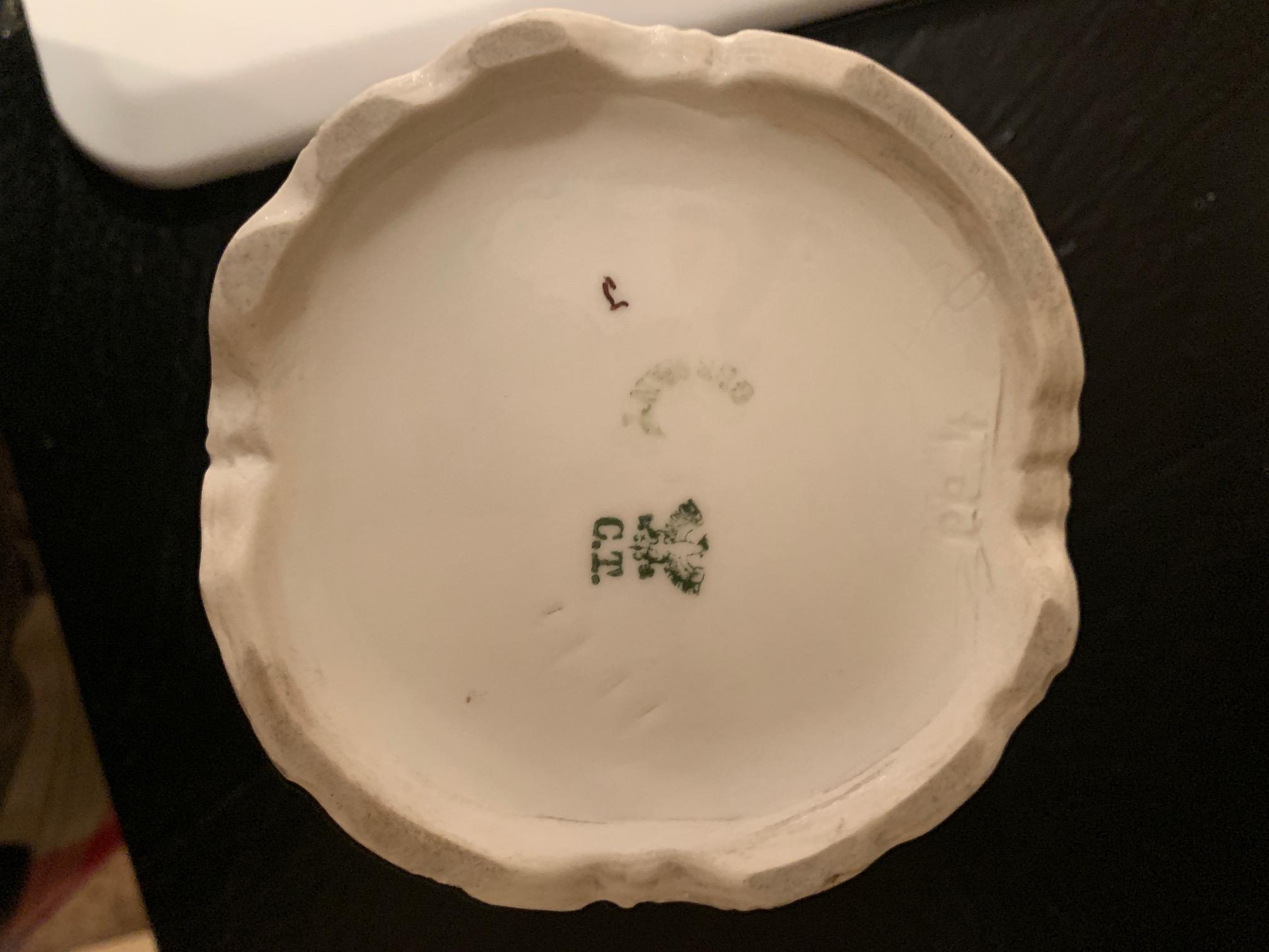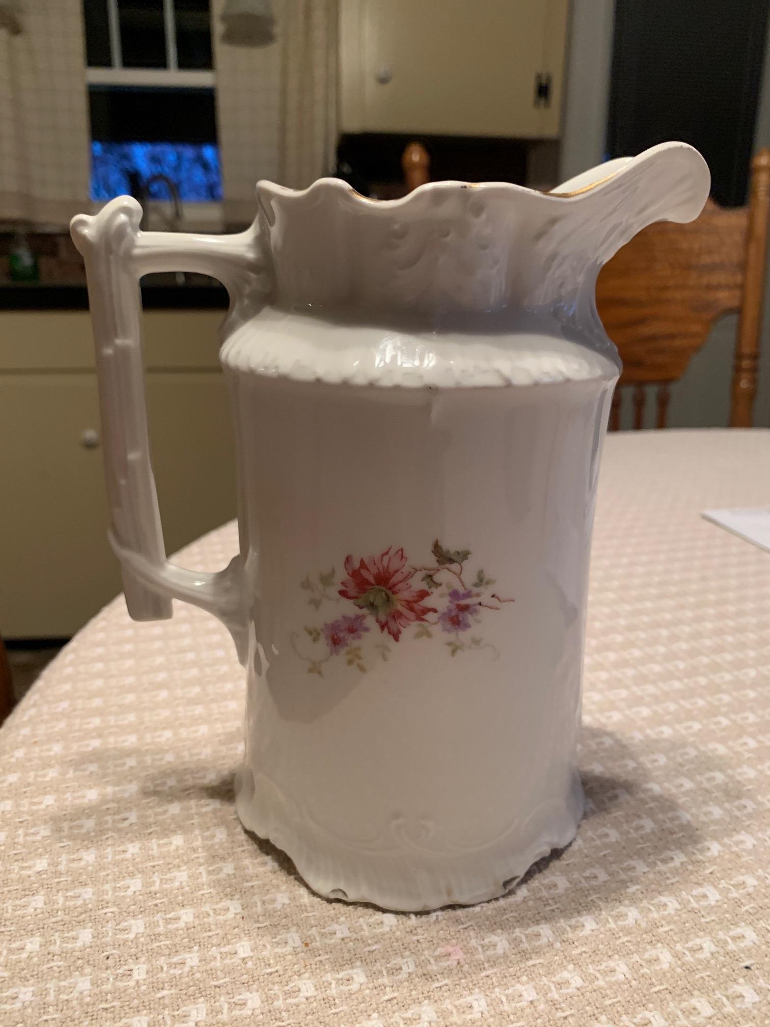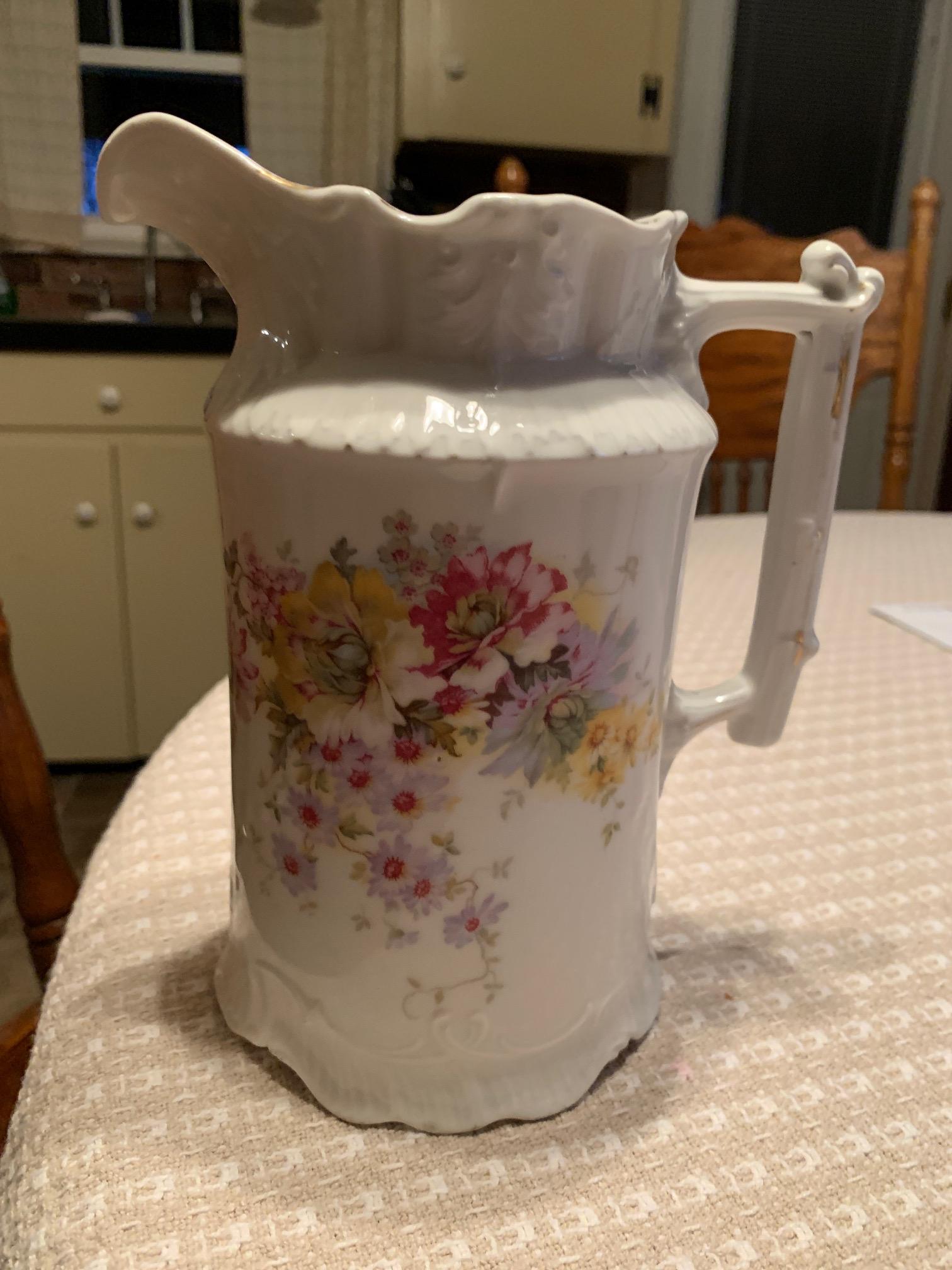 This listing is for 1 pitcher marked C T on the bottom. It is decorated with multifloral bouquet and gold trim. It is in very good vintage condition with some gold loss. You may find some light crazing or a nick, though I do not see any.