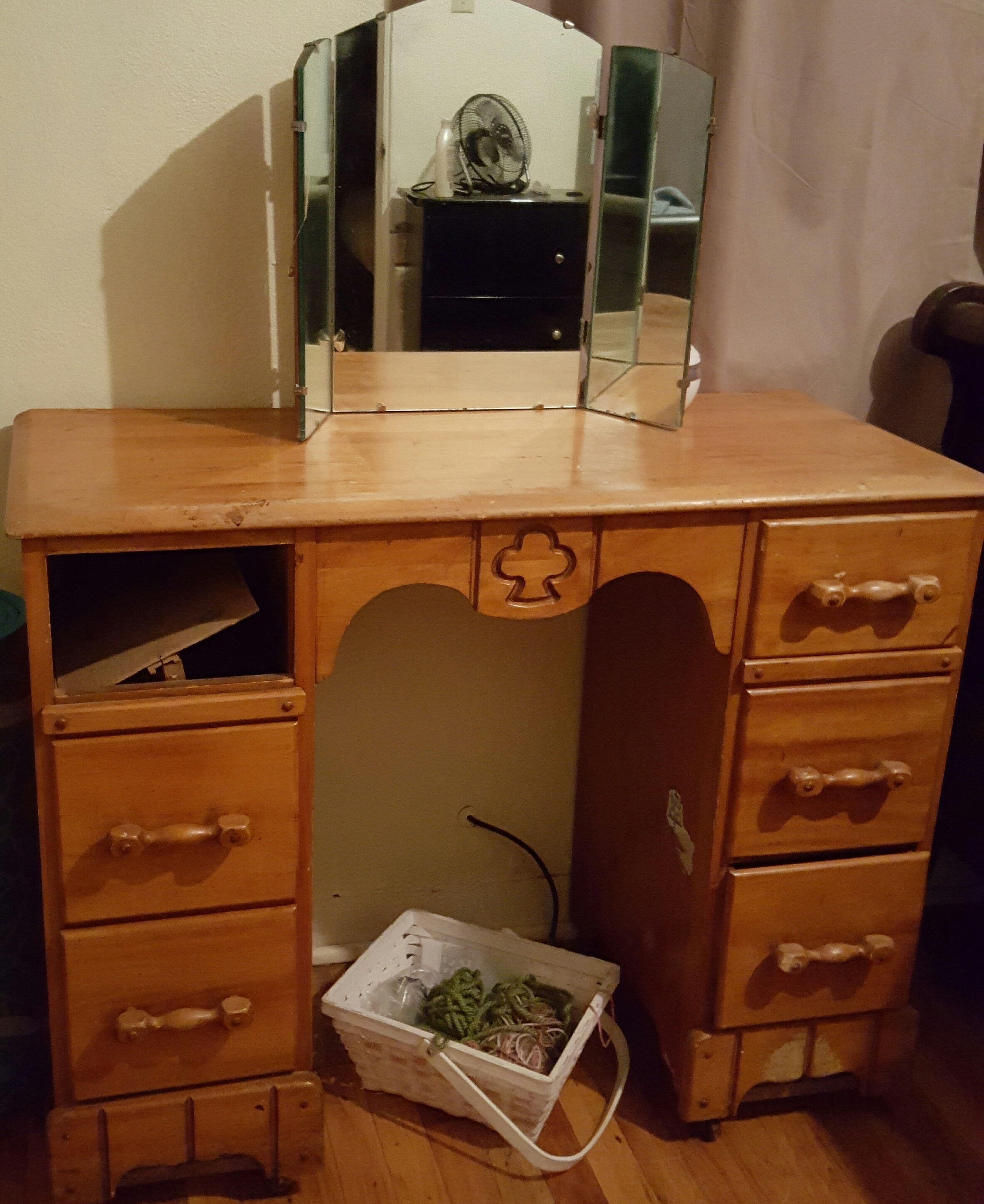 This vanity was handed to me by my mother it has been in the family for four generations my grandmother handed it to my mother, my grandmother was born in 1905 she had it when she was a child up until before she passed away and handed it over to my mother, which my mother handed to me