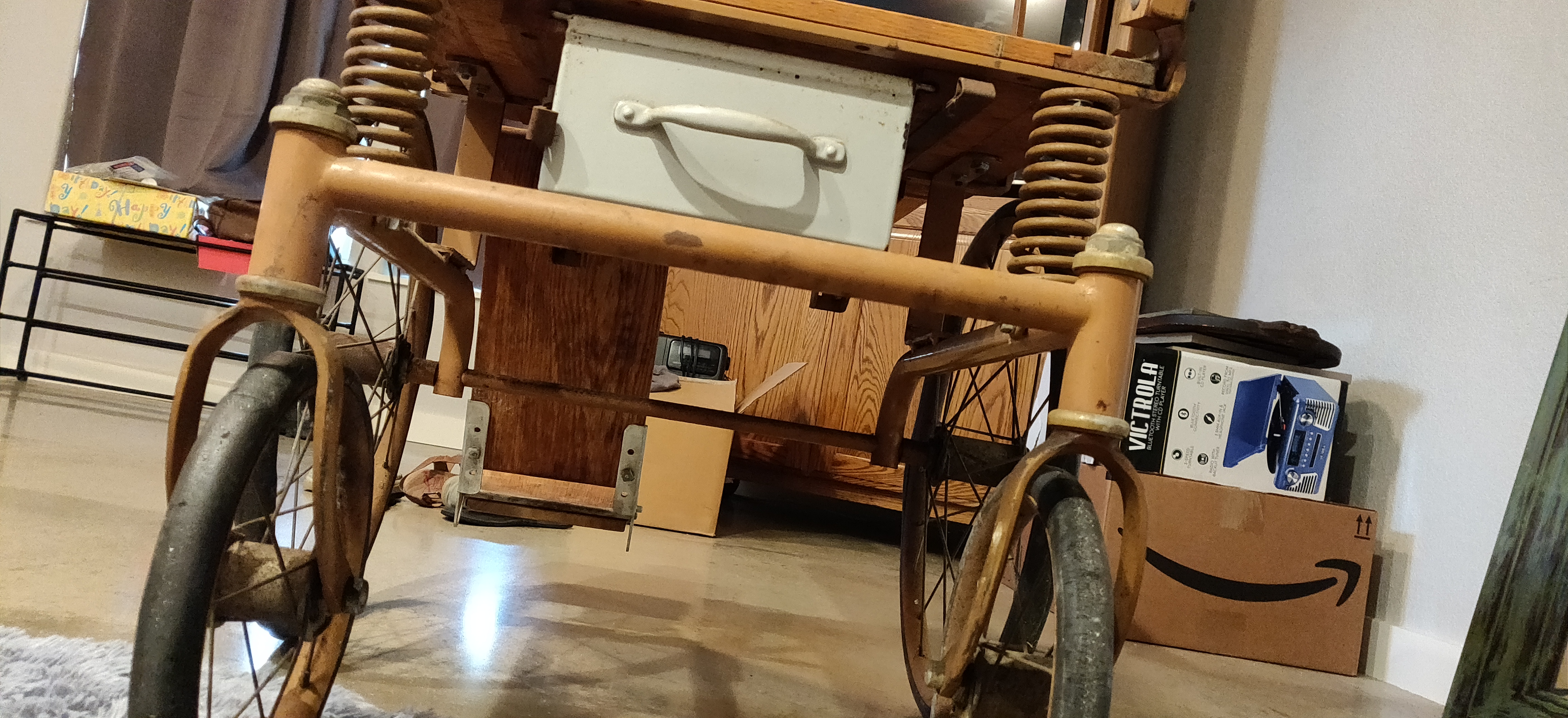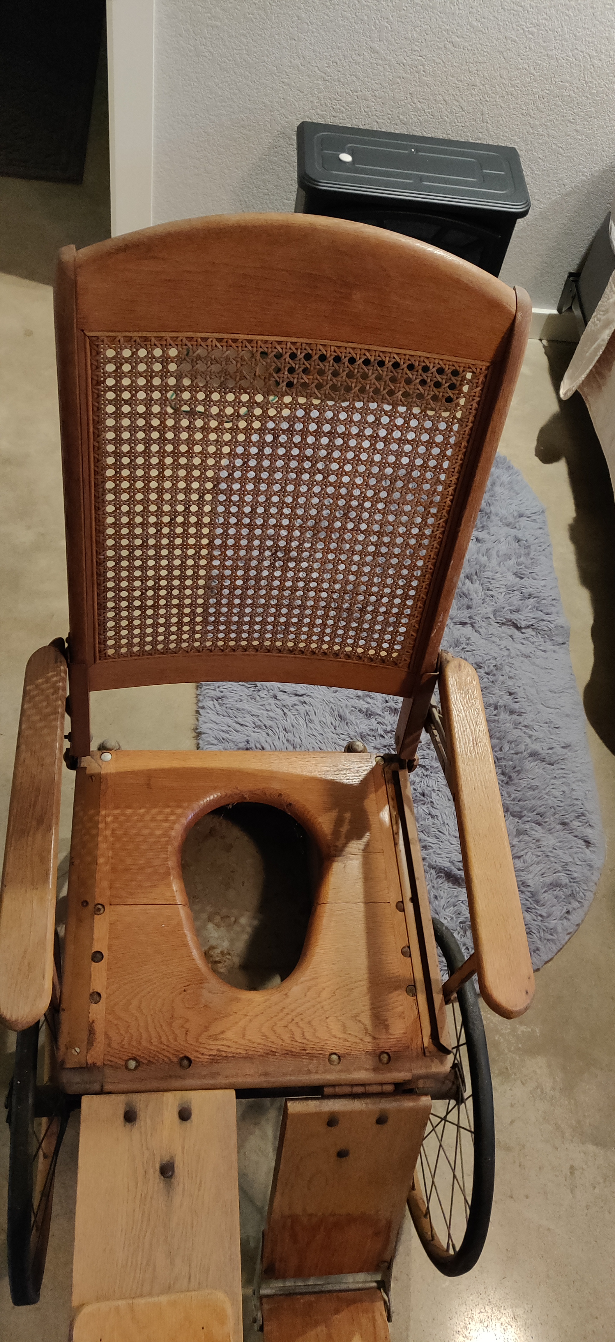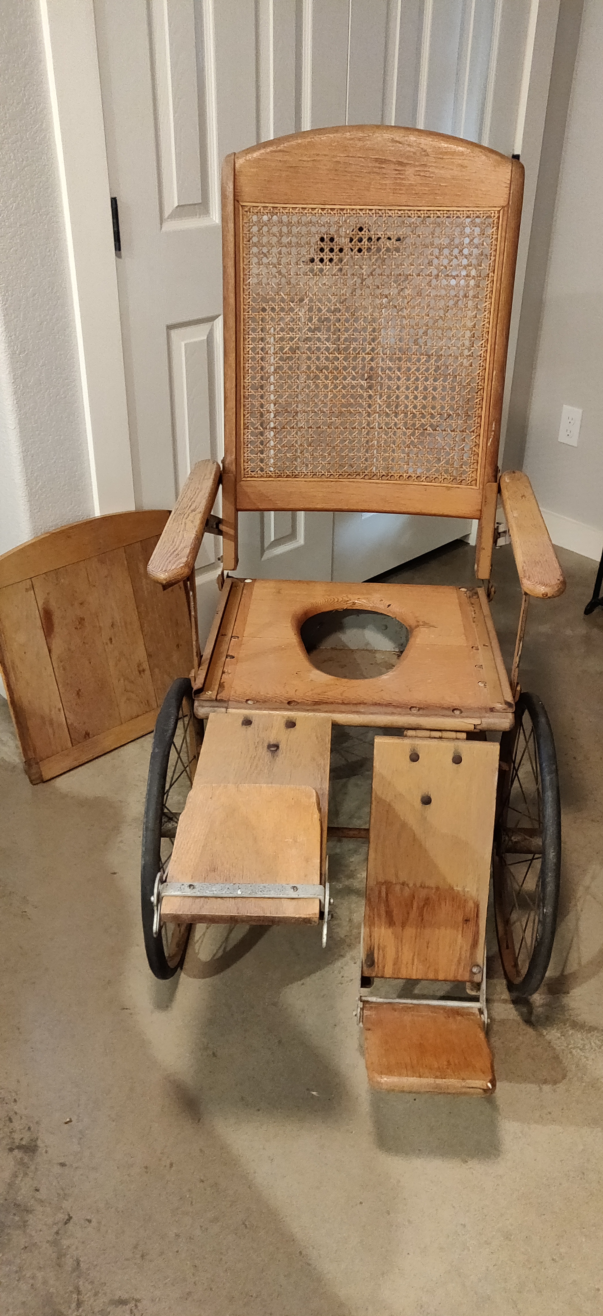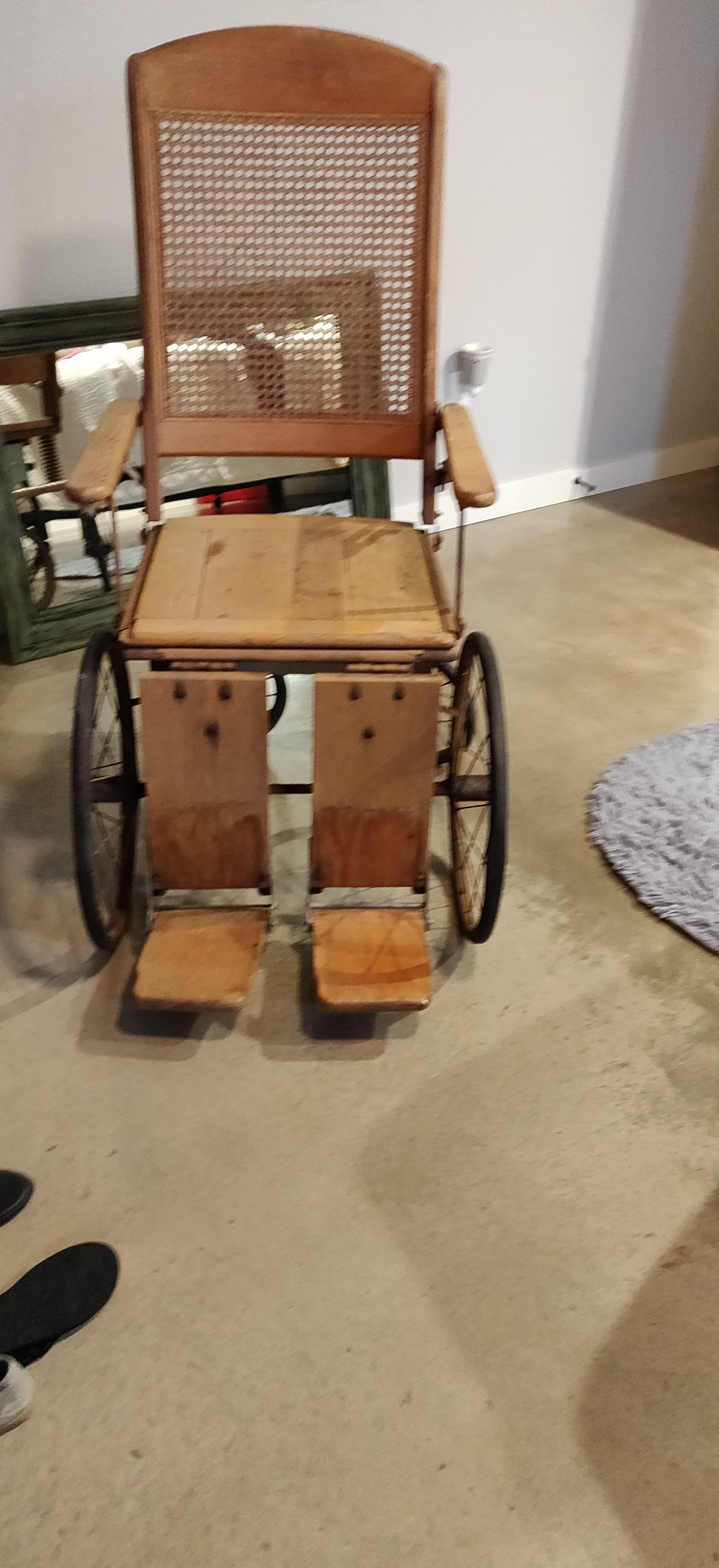 Description Fully functional and all parts. Has solid wood seat with pull out metal tray, back upright is can or wicker, wheels roll, legs fully operational and reclines flat. Category General Antiques and Collectibles Price asked $1600.00 Is item sold? No Log in or register to post comments Photos