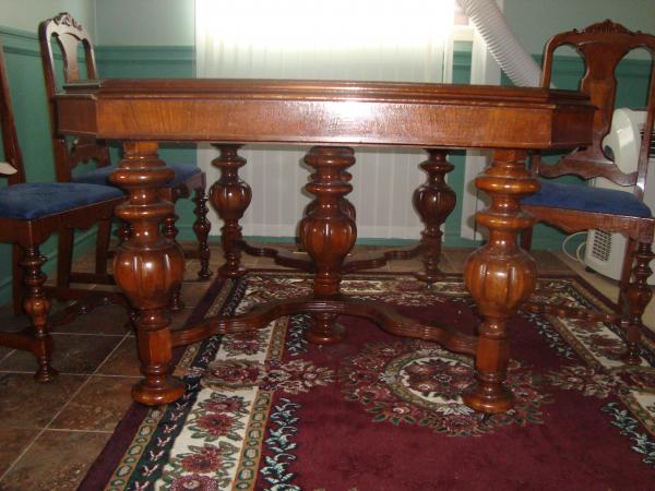 The set includes the table, kings chair, 5 other chairs, a small hutch a large hutch and a china cabinet. all matching. online pics on kijiji edmonton.
