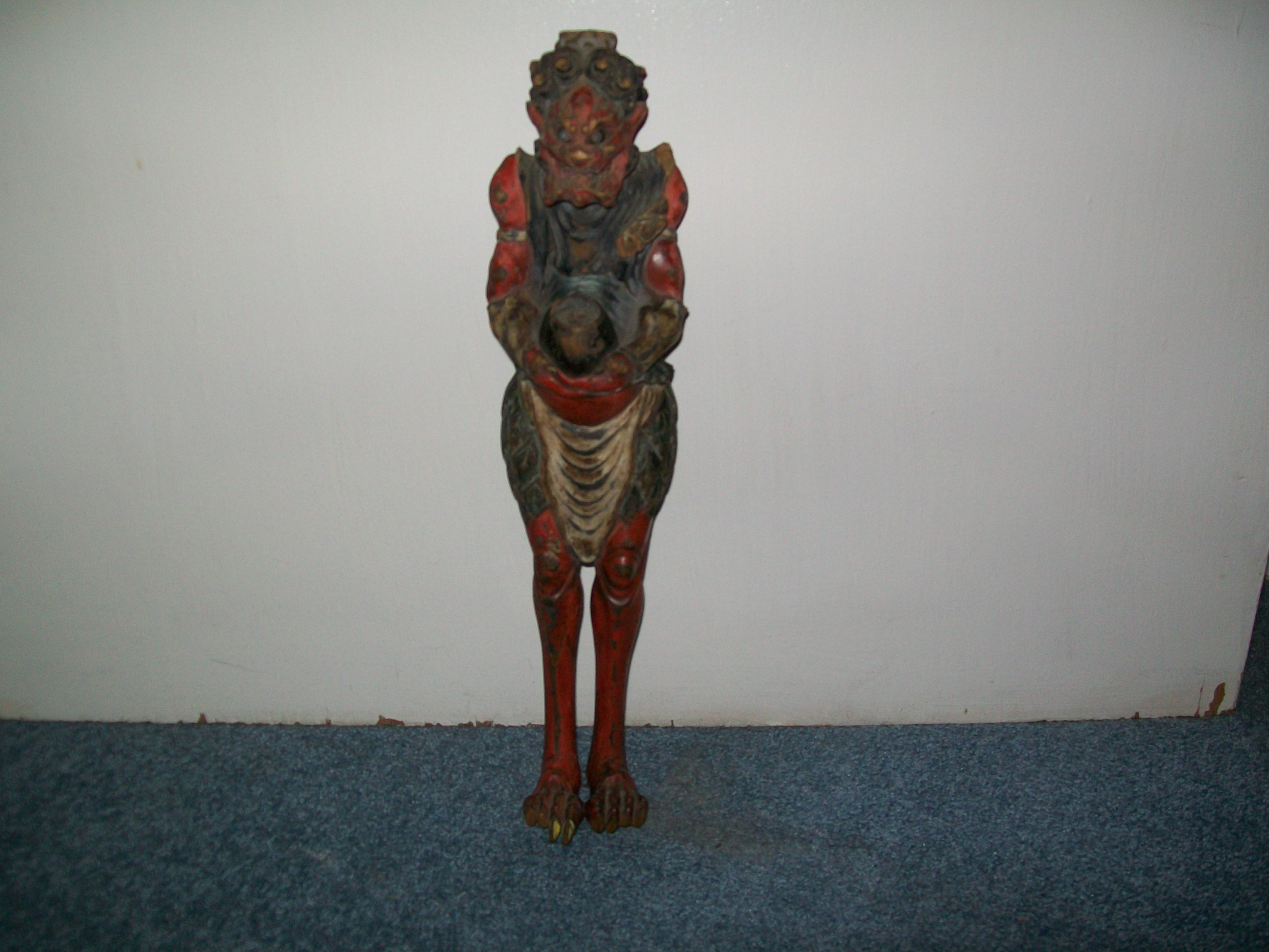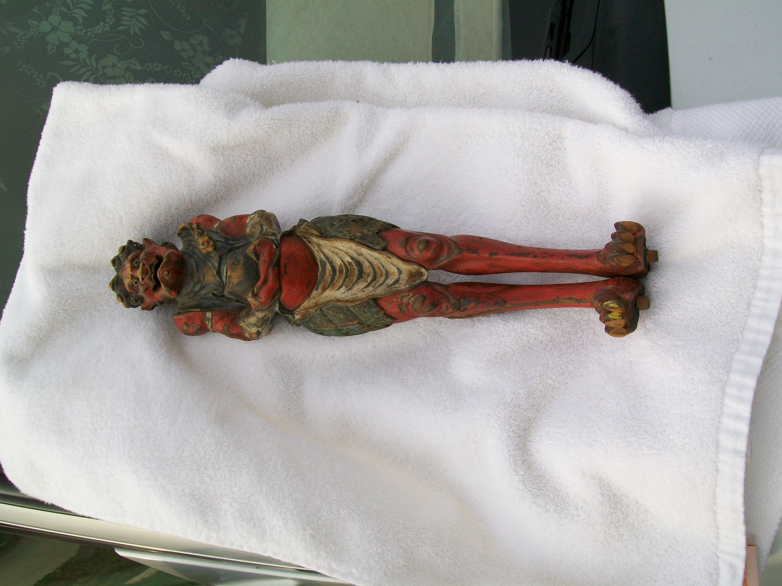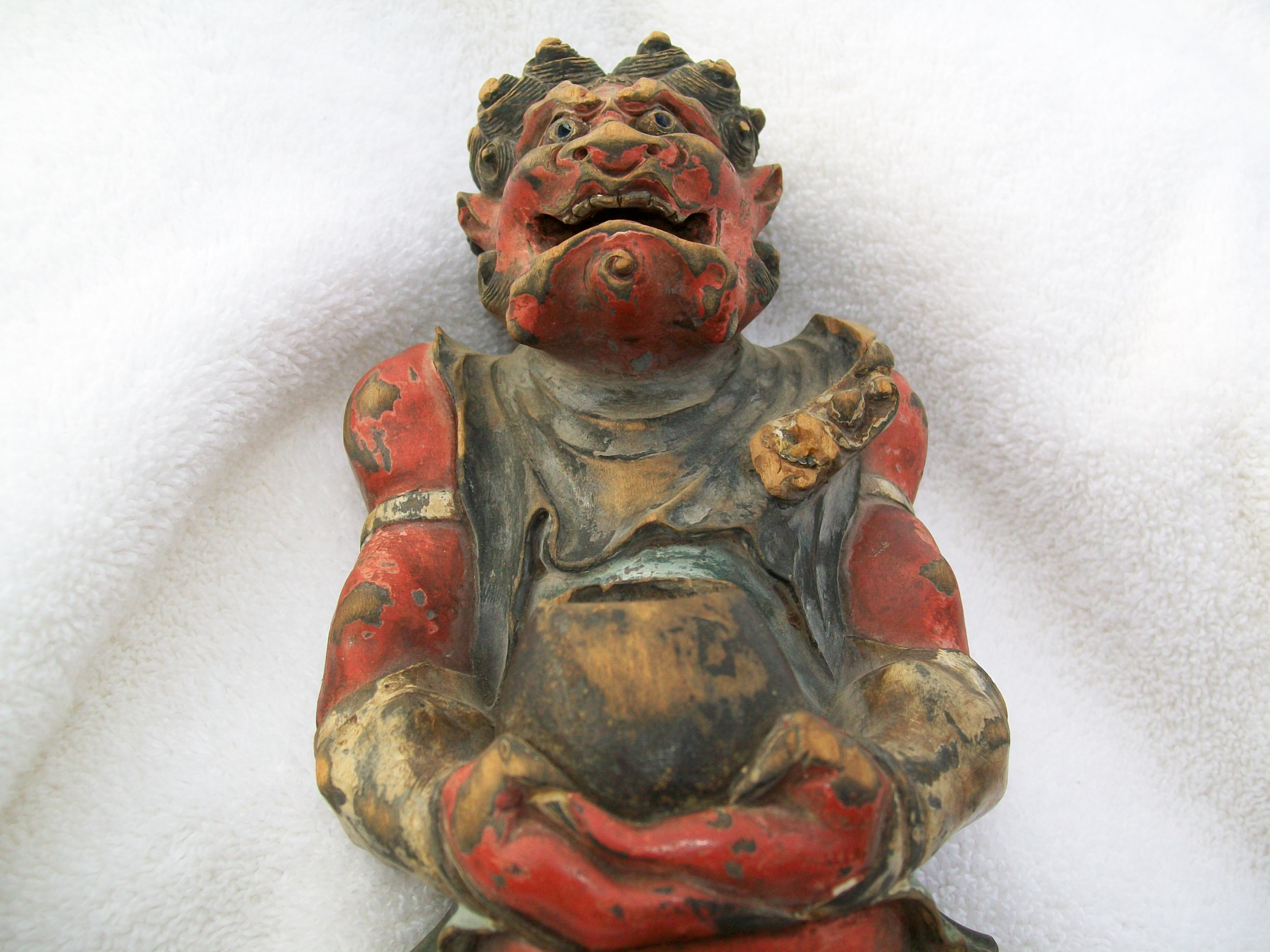 12" high Chinese Pot-belly Wine god (or devil), may be approximately 300 years old, one leg is cracked but may be glued to full integrity