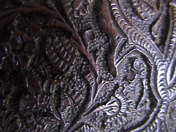Condition is very good, it has no losses or damages and it is covered with a thick brown patina. Some corrosion and rust droplets inside. Pure copper, handbeaten. Bottom square stand seems to be tin-soldered as in places I can see tiny brass formations. The soldering has a pin hole damage, visible only under scrutiny (between the vase body and the square stand only, not right through).