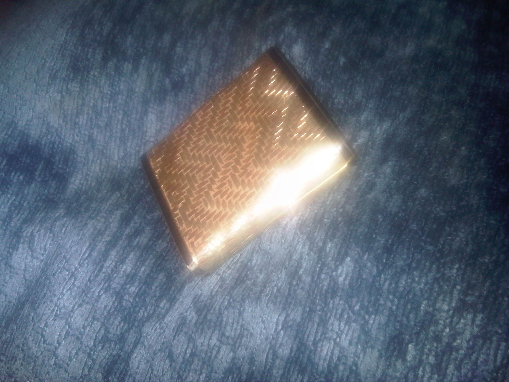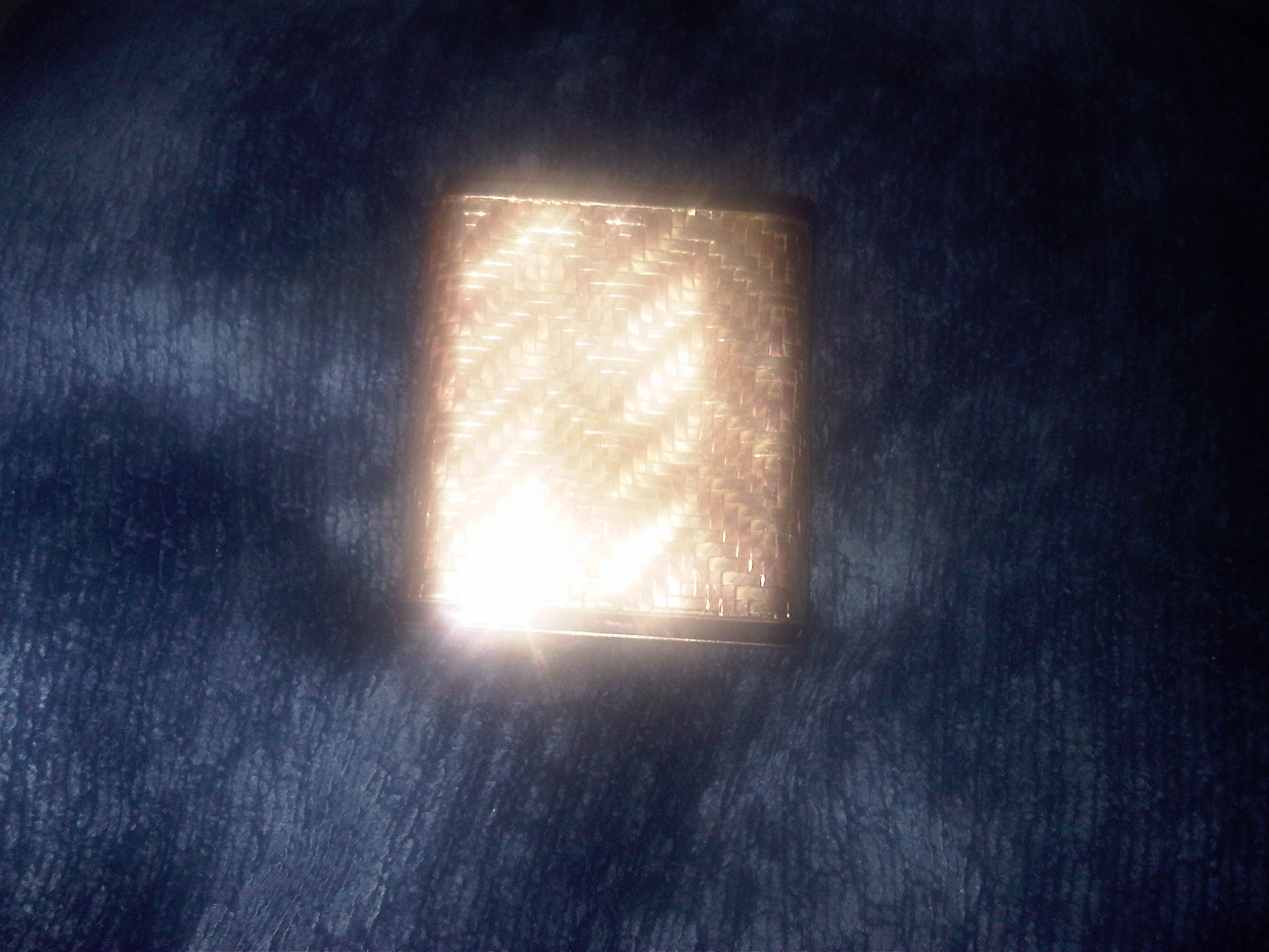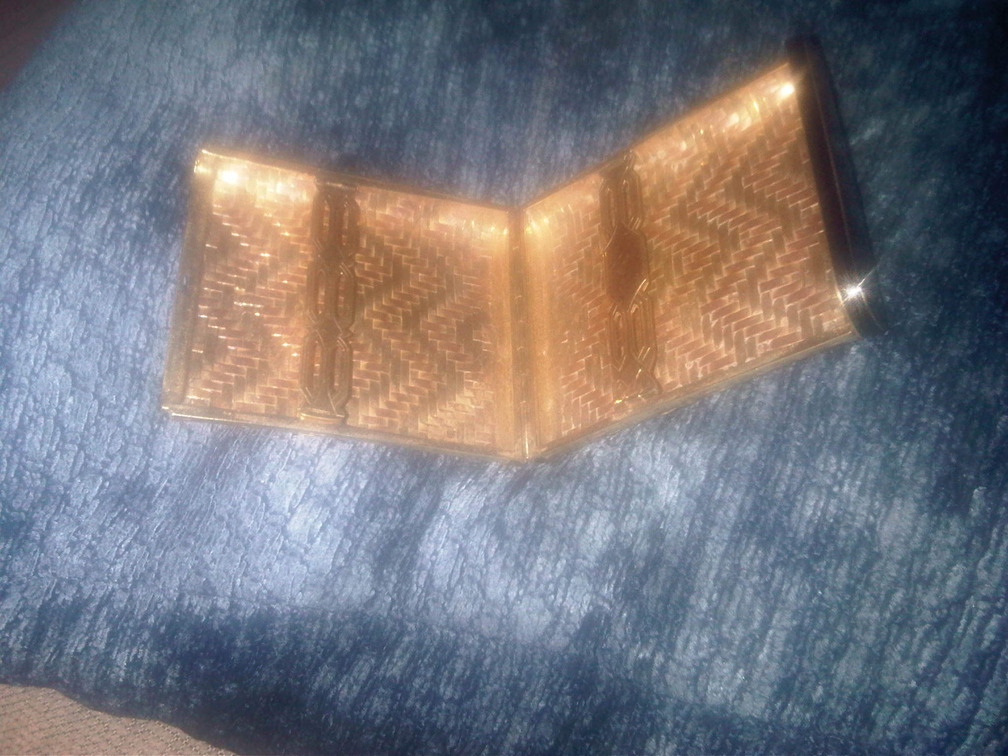 99.1 grams of 14kt gold. Woven two color? Top to bottom bifold, spring activated? Patent number is 1662028. Has 2 letters it appears but do not have magnification.