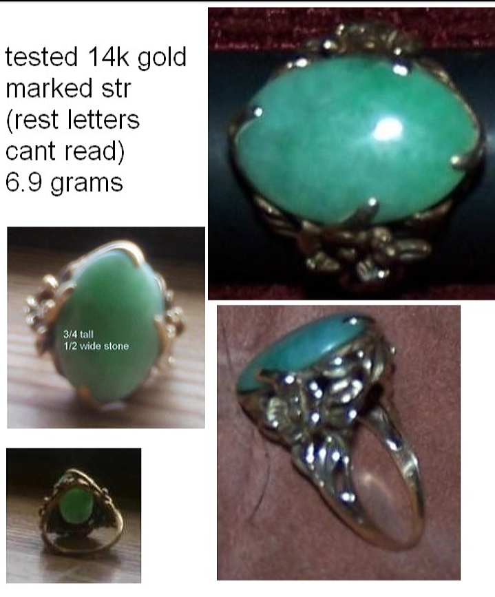 14 k gold ring tested looks like letters str on inside band weight 6.9 grams