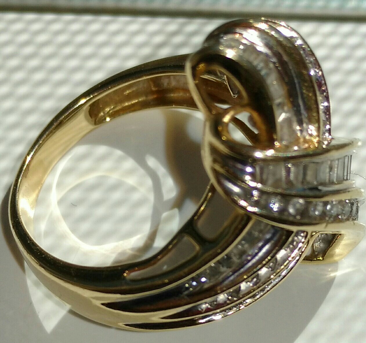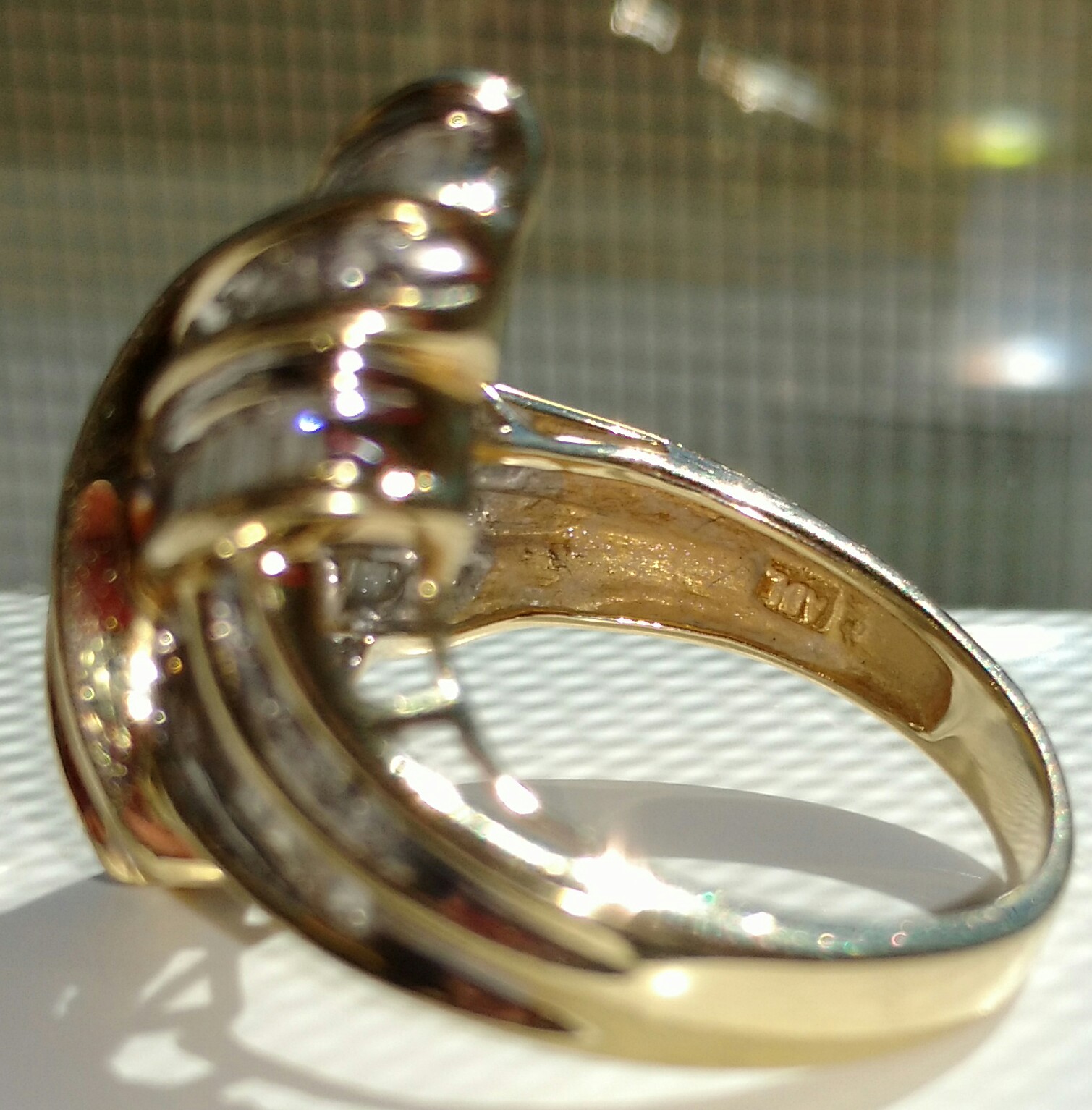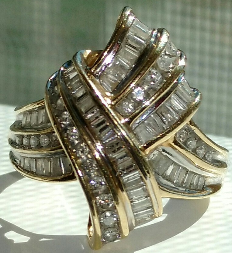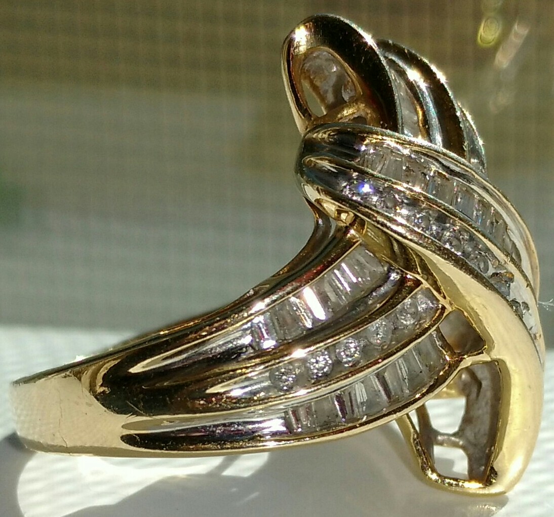 purchased this beautiful womens designer ring at an estate sale a couple of years ago near champagin il. The woman I bought it from was 40ish, and was getting married so selling off things at her house that were of no interest to her, including this lovely ring. She said her EX fiance purchased it from her now deceased father who dealt in fine jewlery from estates etc. I believe she said he traveled a lot to do appraisels and locate select pieces. Anyway...she had no use for it anymore & had it laying in a box with some costume jewlery ungarded in her kitchen..it of course caught my eye, & I went home to get my husband to come look at it with me & bring our jewlers loop. He wasn't sure as it needed a good cleaning, but I felt like it was worth the $100. price tag she had on it....though I decided it's toward the end of her 3 day sale, I think I'll offer the $40.00 cash I have in my pocket & to my surprise she took it. Well I had a local jewlery store send it in to be cleaned & tightened a couple of loose diamonds, they also tested it and the diamonds are real. that was another $40.00, so I have a grand total of $80. invested in it. There are a total of.. 24 Round diamonds & 6 Baguette strips. Inside it is stamped 14K on one side & on the inside of other..is a little exclamation mark or something can't quite make it out and the letters..ADL. shown in one of the pics. From my on line research I believe the ADL stands for, Abraham David Loewenstark. But If anyone out there is familiar with this style of ring I'd love to know..#1 Approximate age...(#2) where it was made at...#3 Approximate appraisel value...Thankyou in advance to anyone who may be able to offer some help with this.