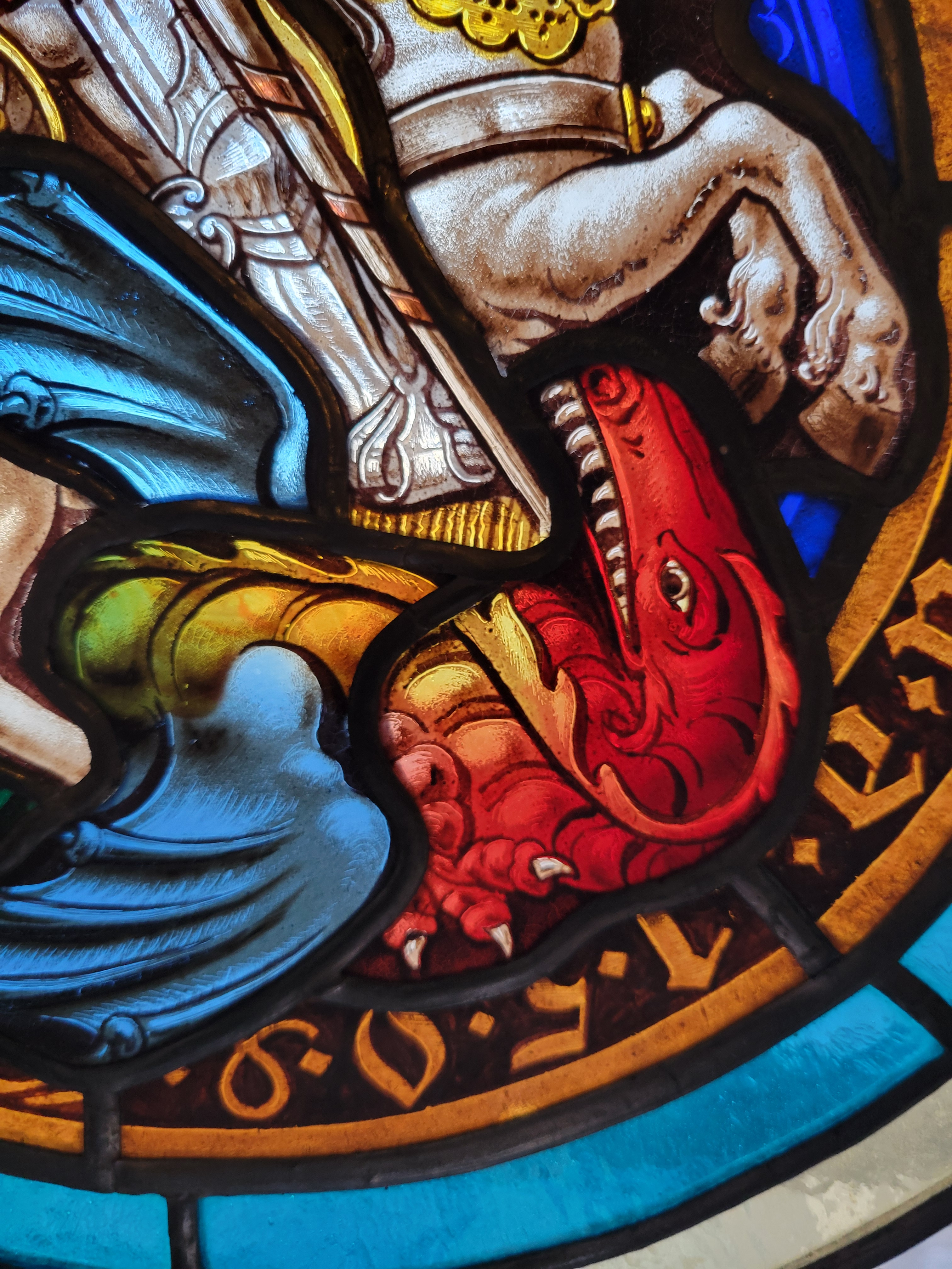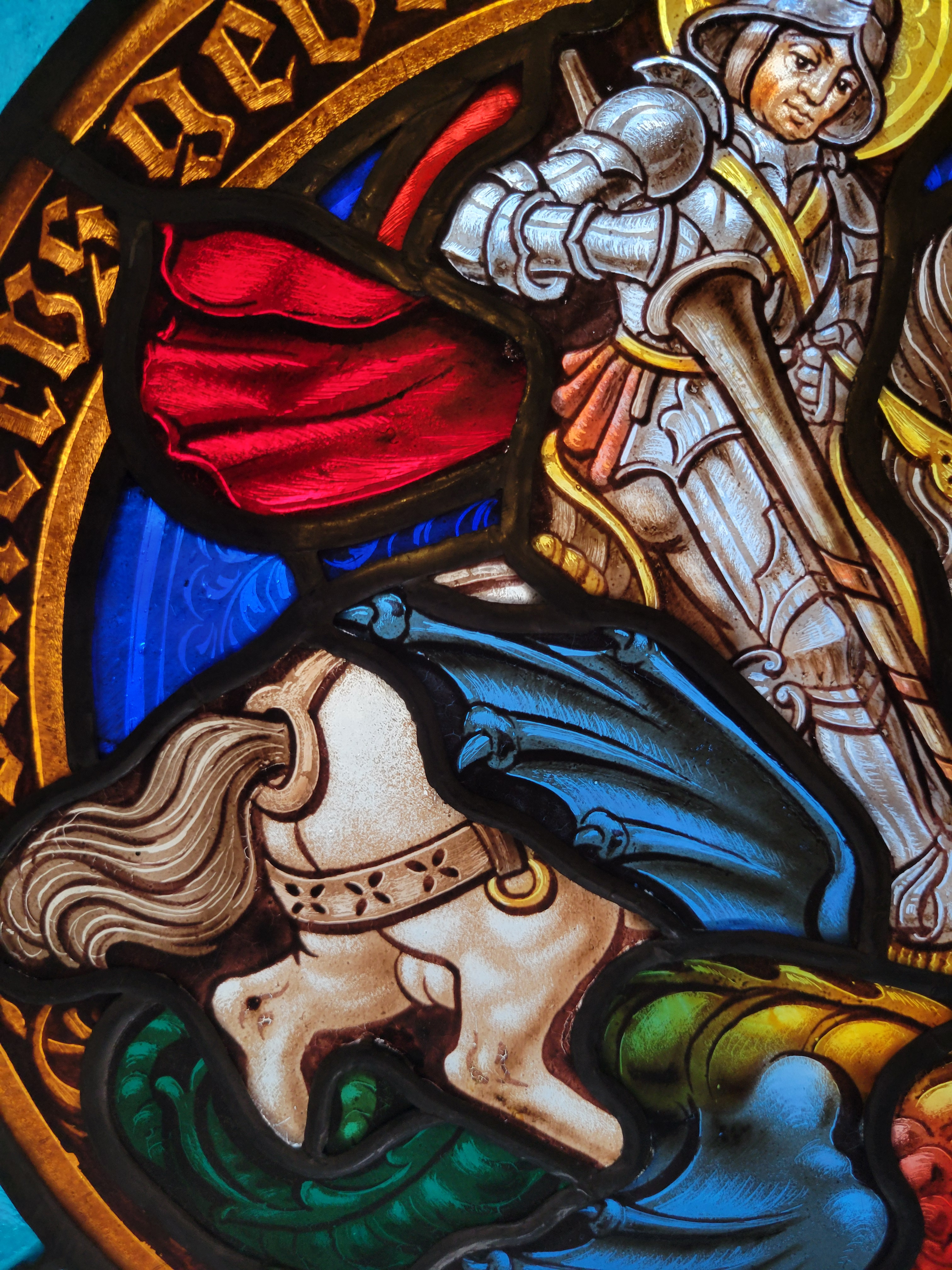 AI Appraisal: 16" Stained Glass Roundel- George and the Dragon