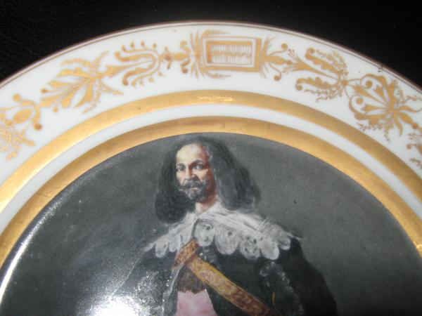 the plates have paintings of spanish royalty.they have gold linings all around.