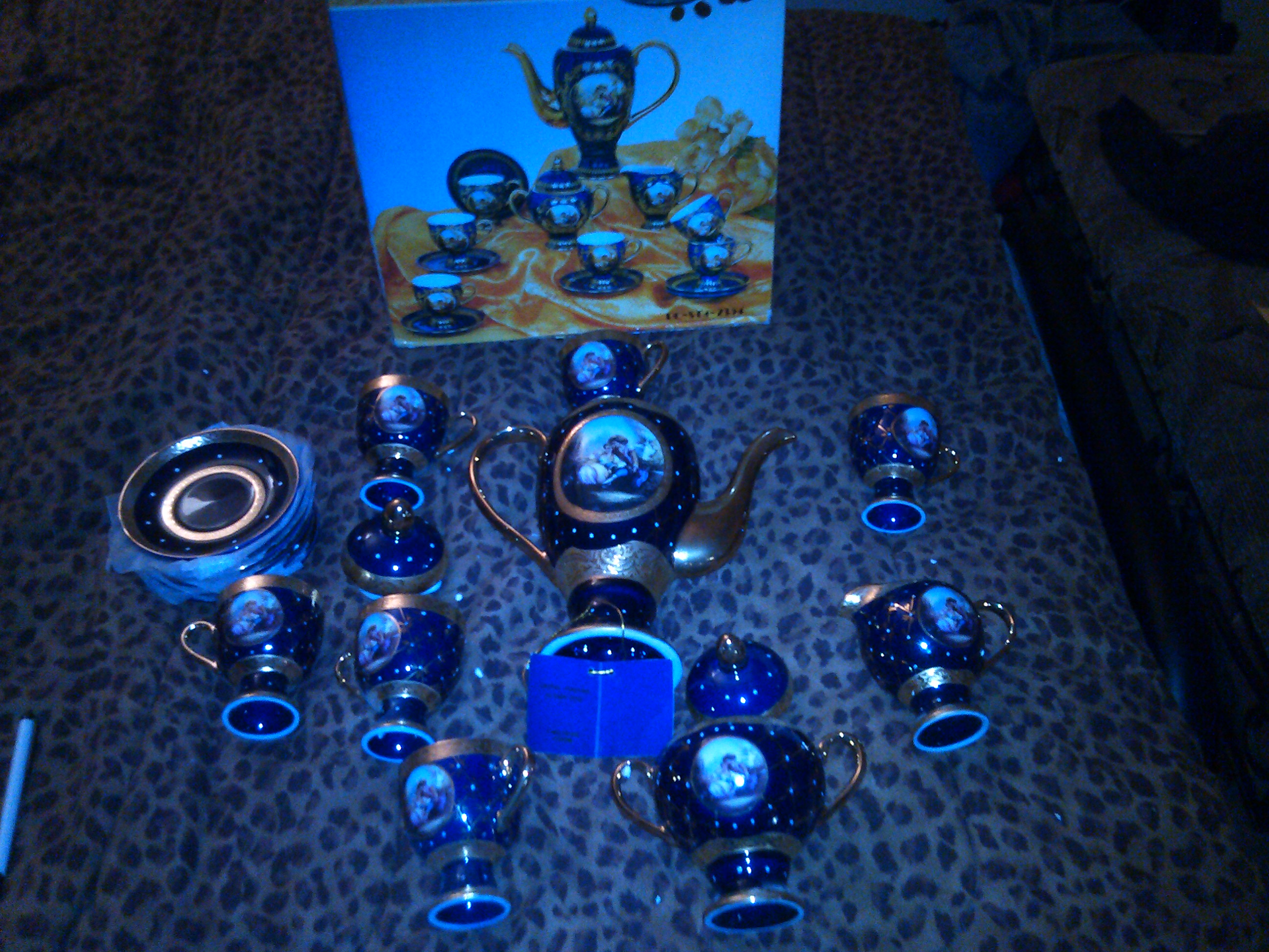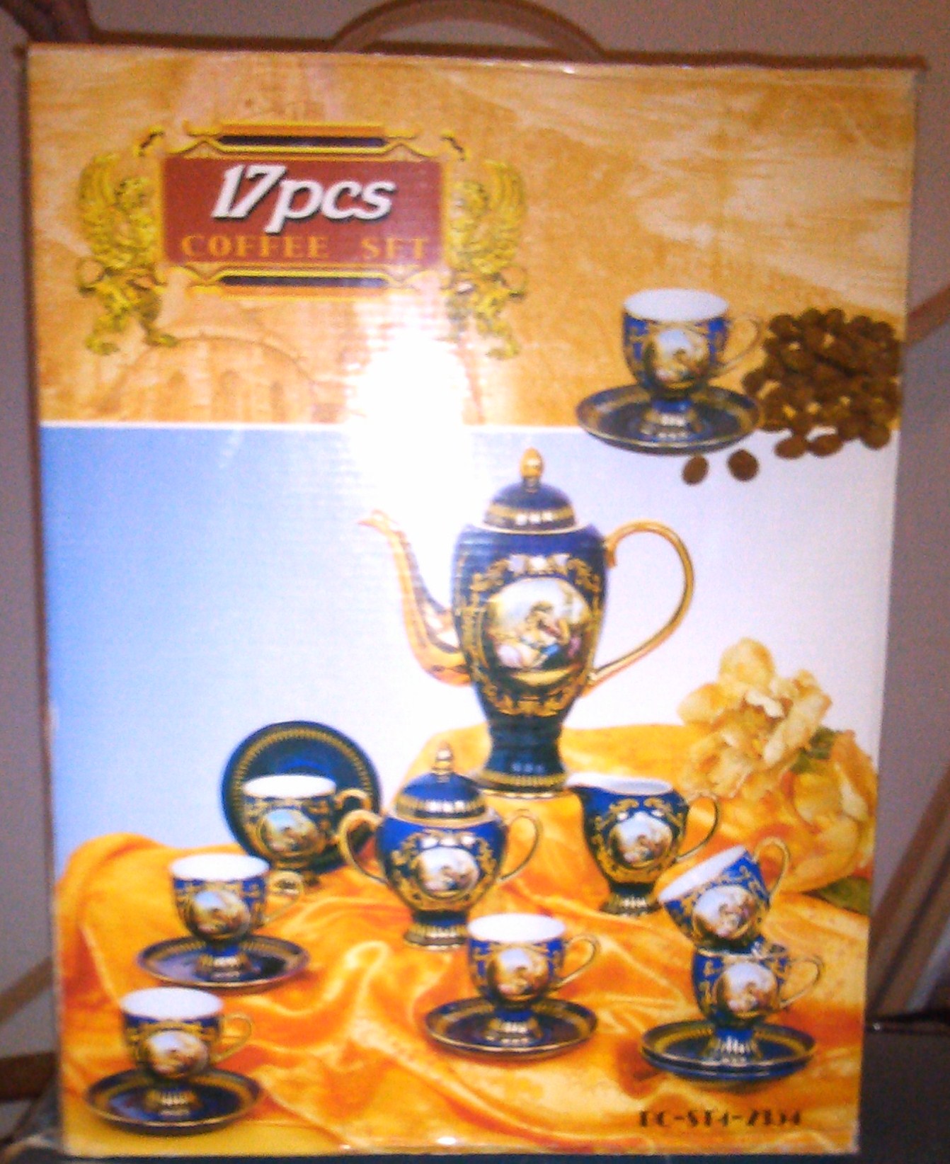 So I got consigned this set to sell. Cant find it anywhere. Its a china import I believe. 70 Ze Zhou seems to be the maker. Its a 17 piece coffee set. The inside tag says Original Porcelain 24 carat gold 3 years warranty washable. Each piece has a number somewhere on it. The big piece has the Ze Zhou insignia. Does anybody have an idea if its actually worth anything? Thank you!