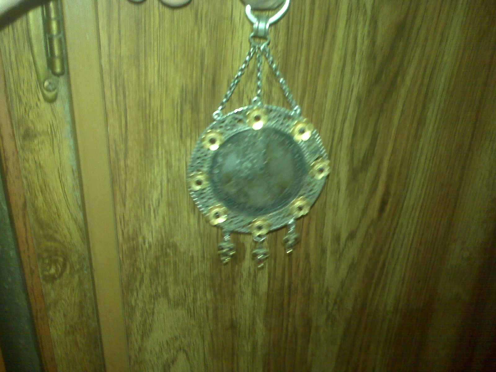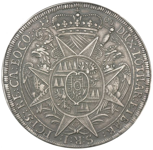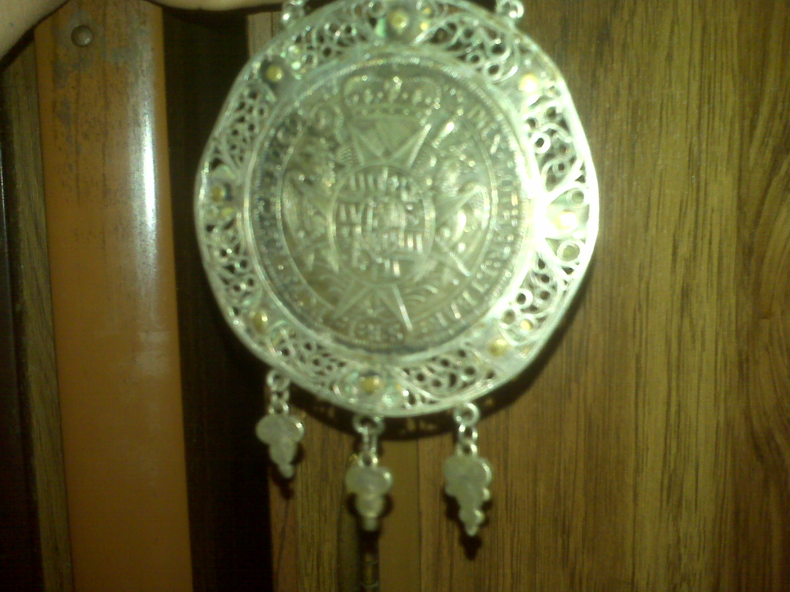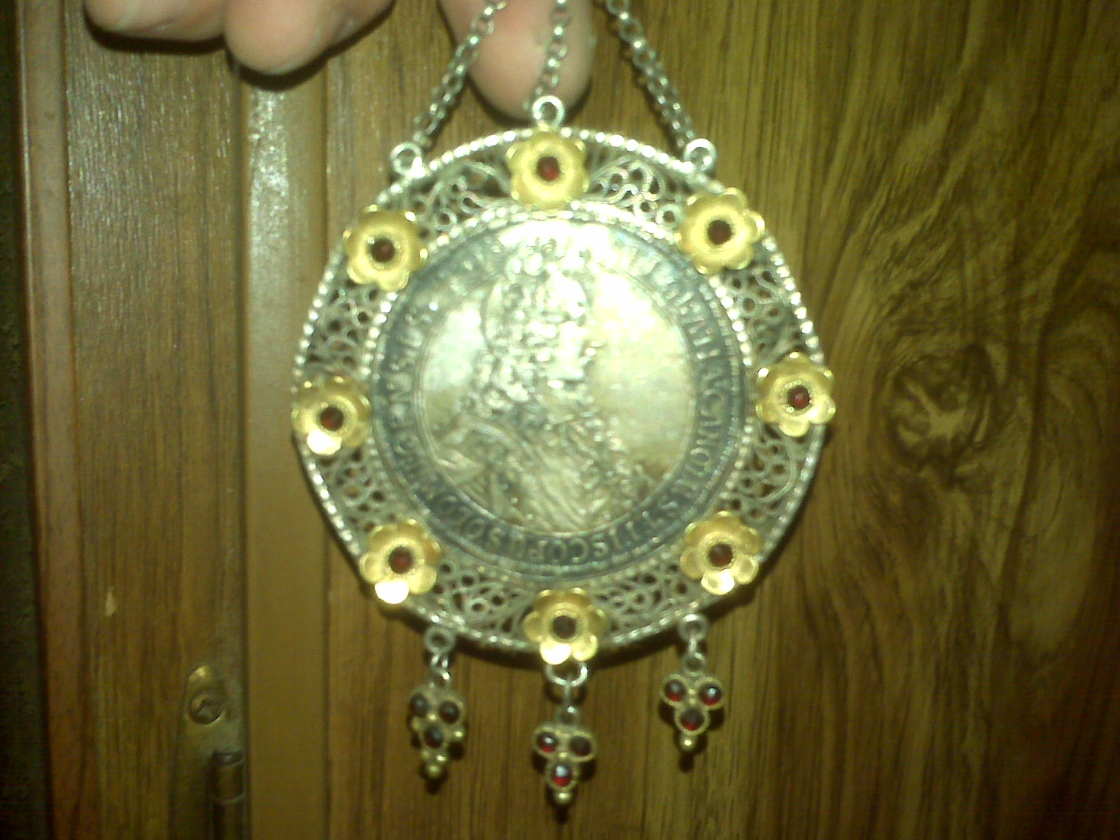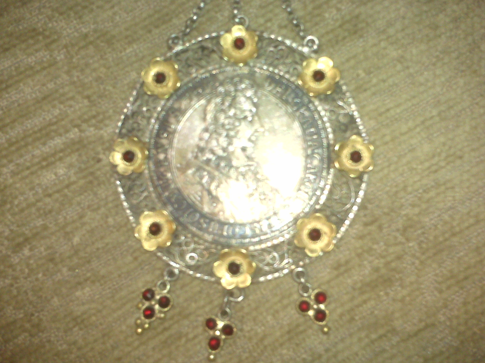 1705 carolus coin with handmade silver,gold and red gemstone accents