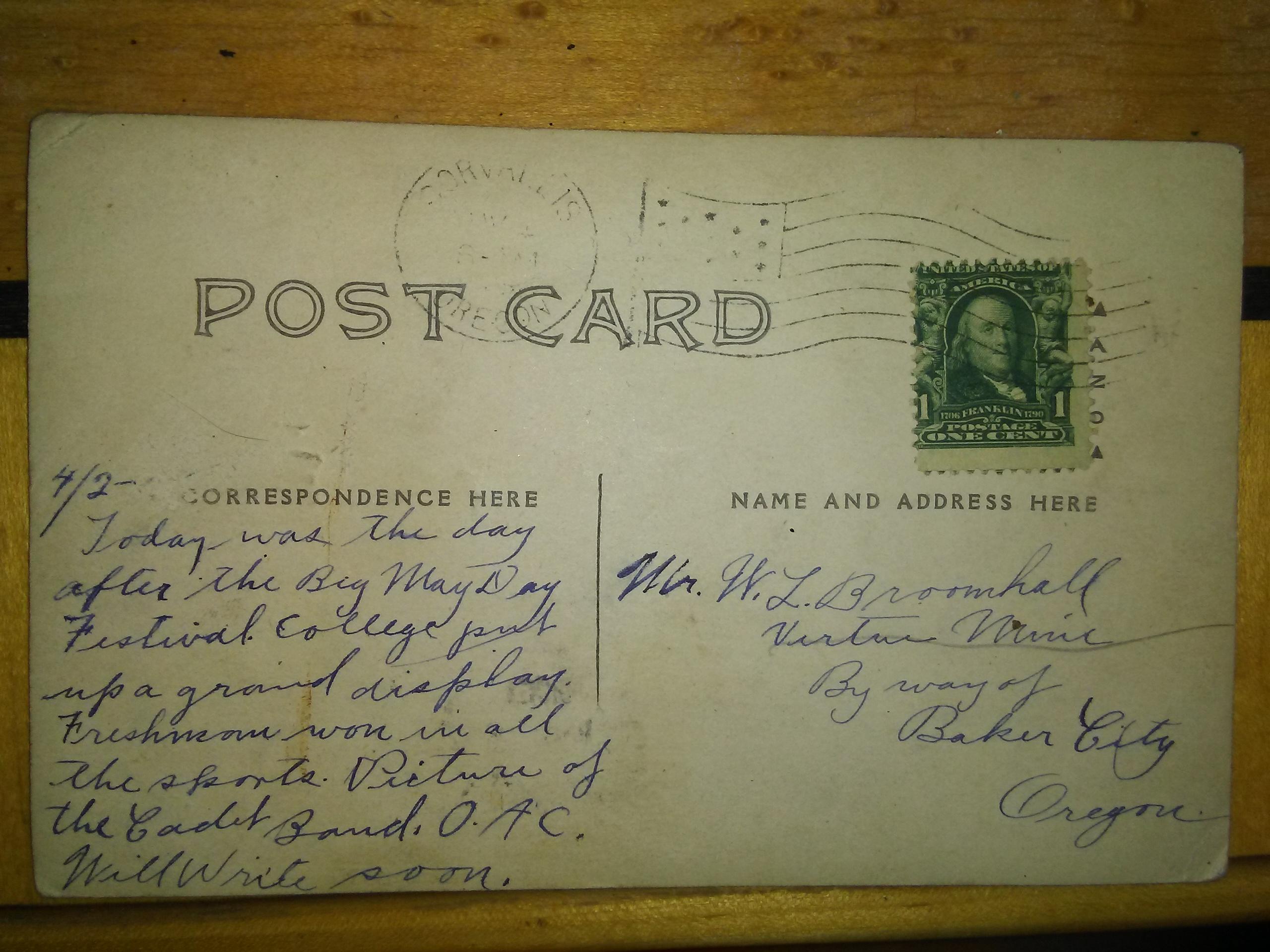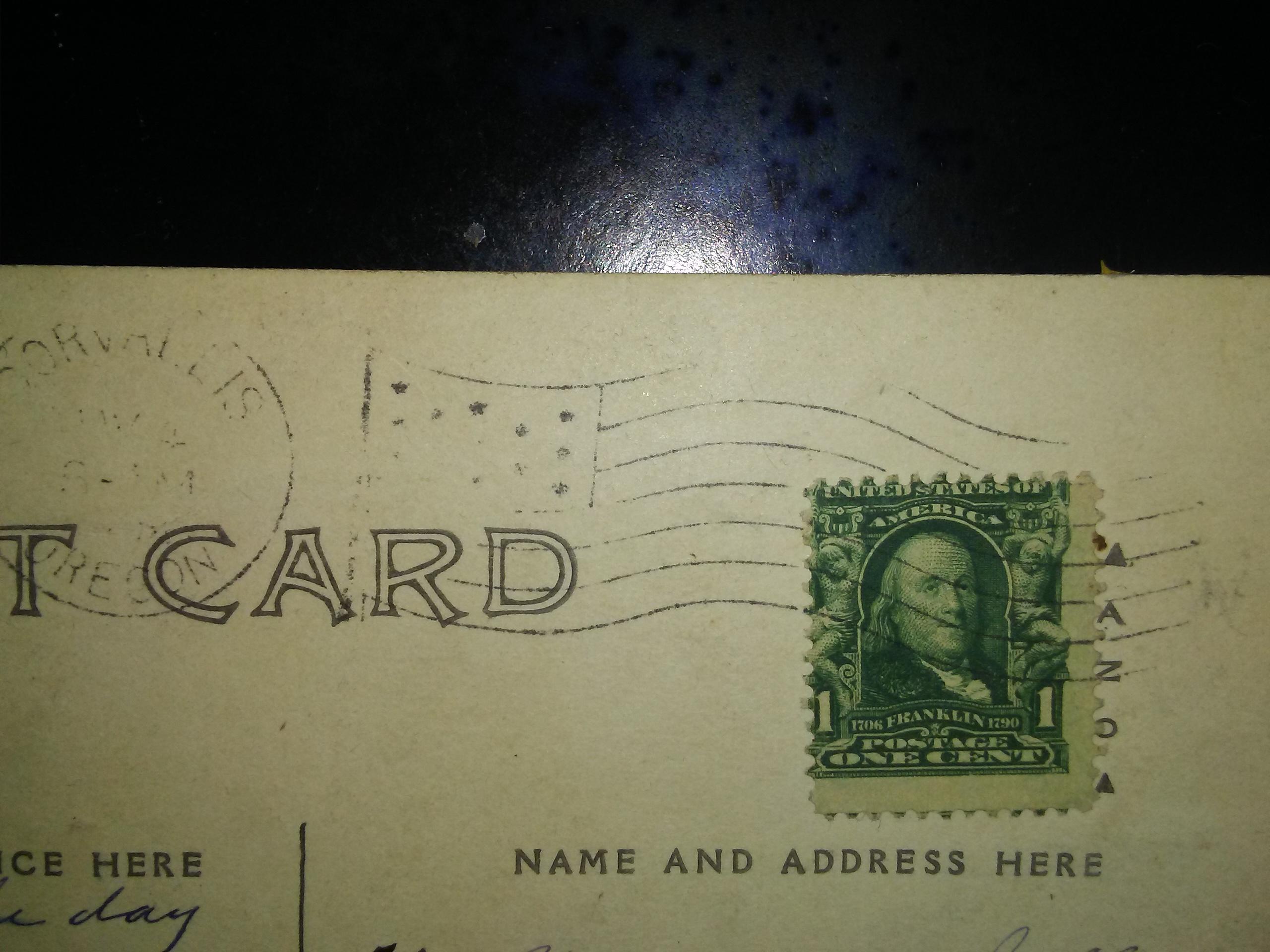 under that it reads Postage one cent