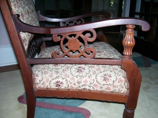 Based on what I can see it's a Victorian reproduction, pop up some pictures from under the seat to show the corner bracing and I'll have another look....BTW 300 pounds is way more than this chair is worth if it's a Victorian reproduction.