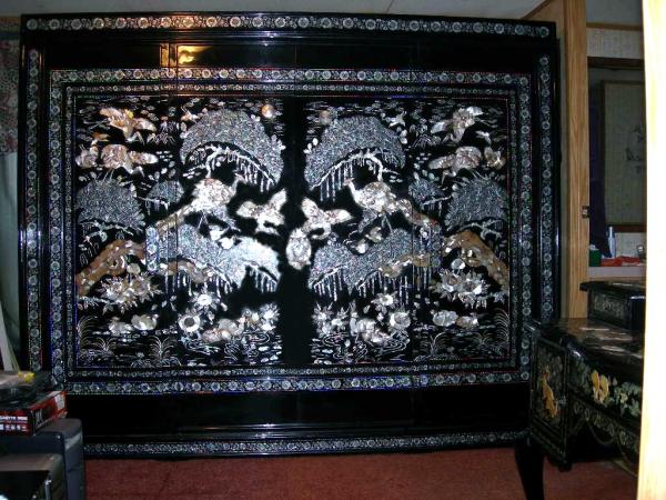 A family here in Michigan owned it, the woman's great uncle was in the Korean War ( around the1950's ). Fell in love and married a Korean woman. ( not known at this time the maiden name ). As her wedding dowery, she was given these magnificent pieces of furniture, handed down through generations in her family. The couple had it crated and shipped to the United States after the war. The woman I obtained these from said she had inherited it and it had been in her family for about 20 years after the couple passed away.