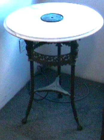 Has artwork and figurines, claws holding balls, and a marble top (made in Italy)