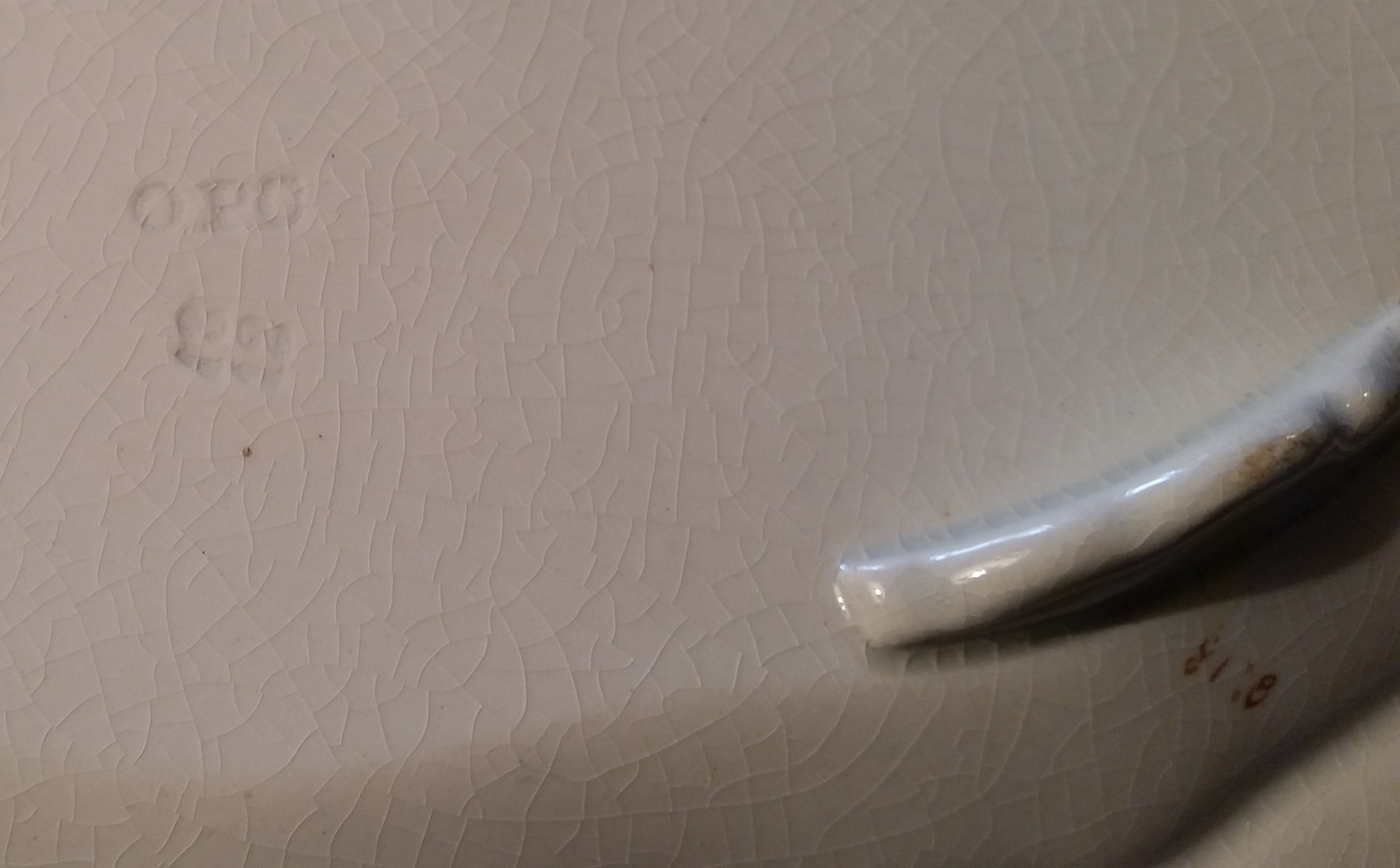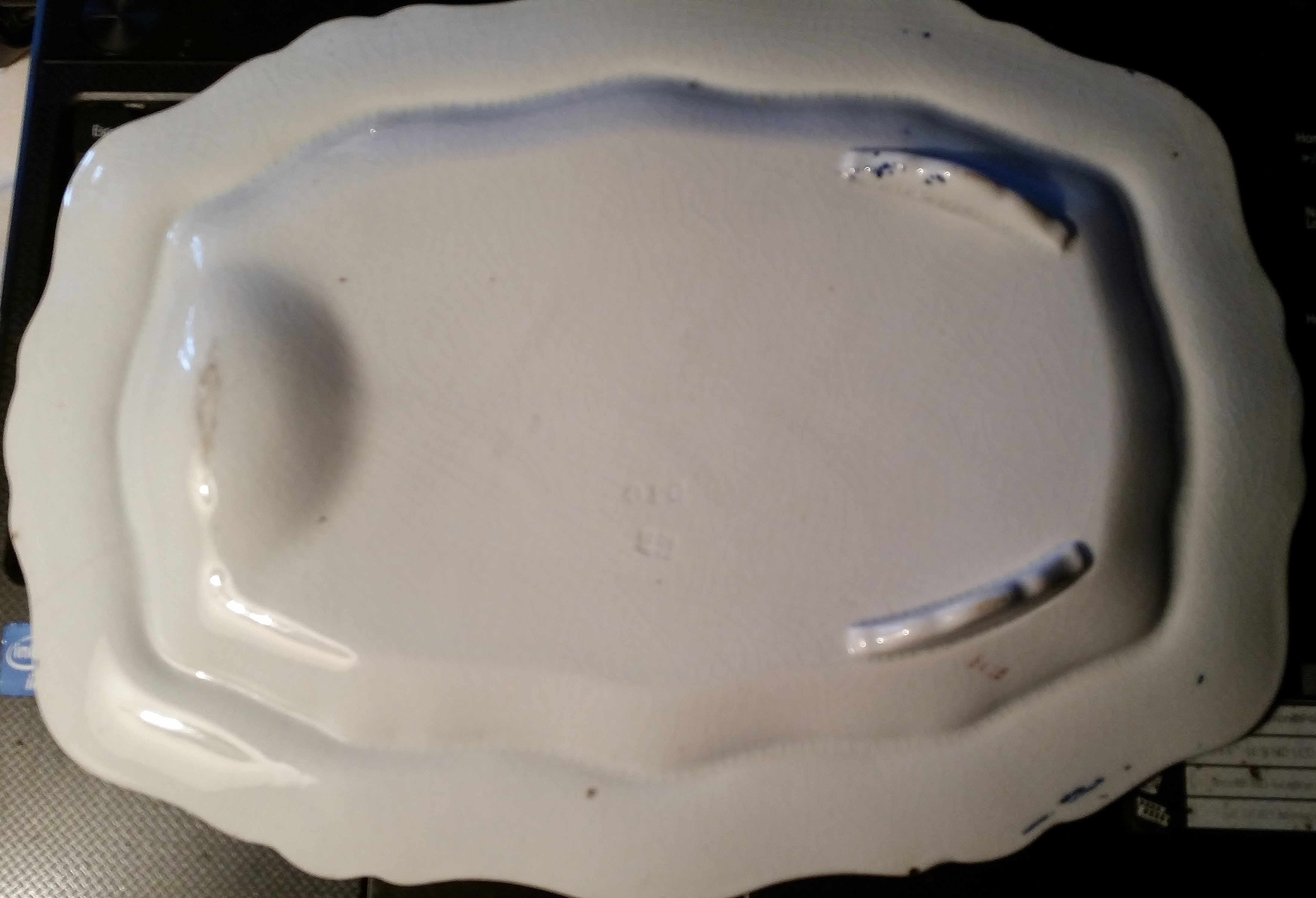 I beleive this is a tree of life Meat Plate. I think it's late 1800's. Markings (could possibly) say OPO & then below that I think it's a 13 with 12 under that. There are also some handpainted small gold numbers I think? possibly 8:18 or 8118