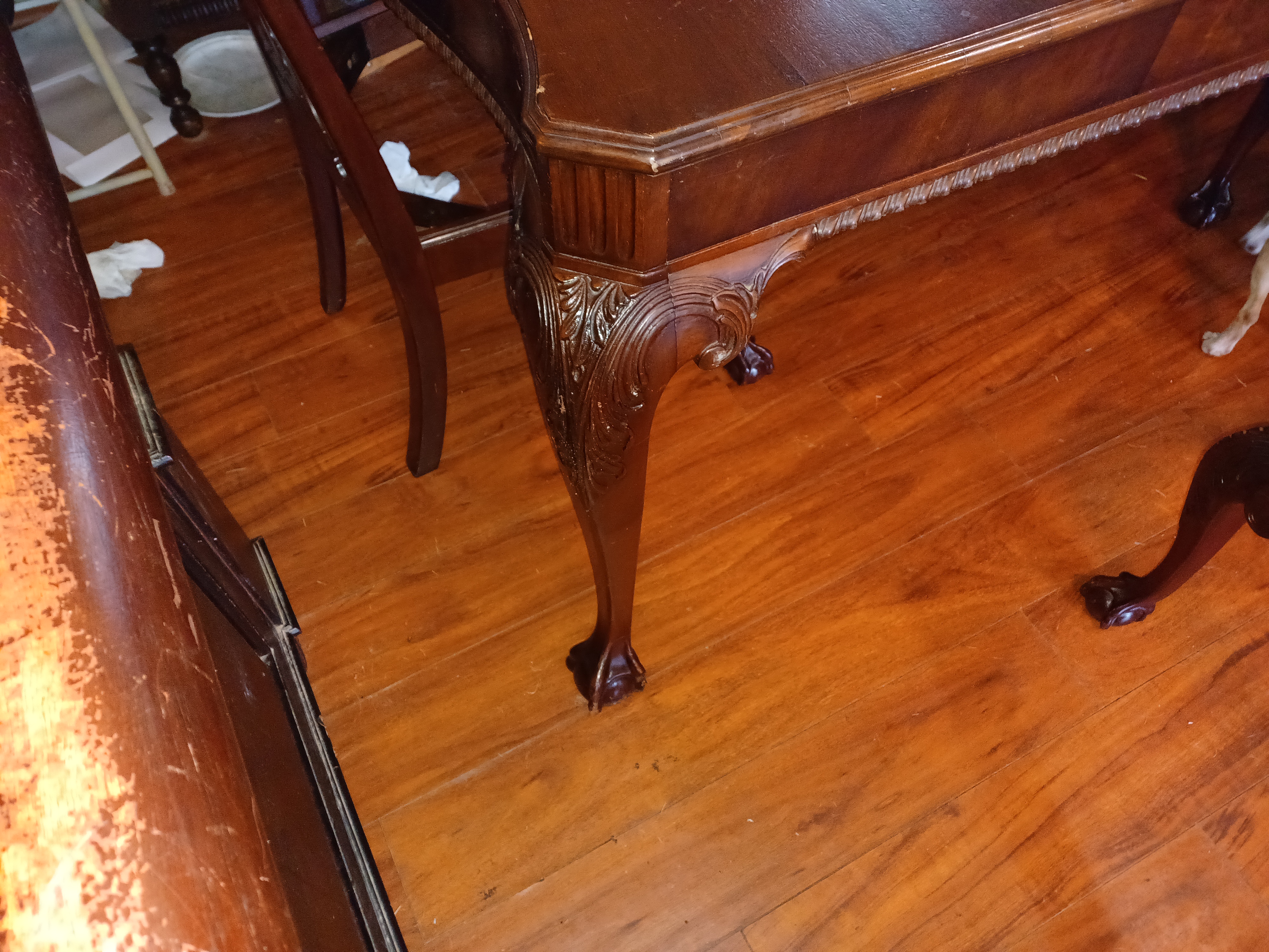 do to the hardware use to put it together I would say between 1815-1840 screws are half machined and handmade all the wood is hand carved no machine carving done