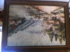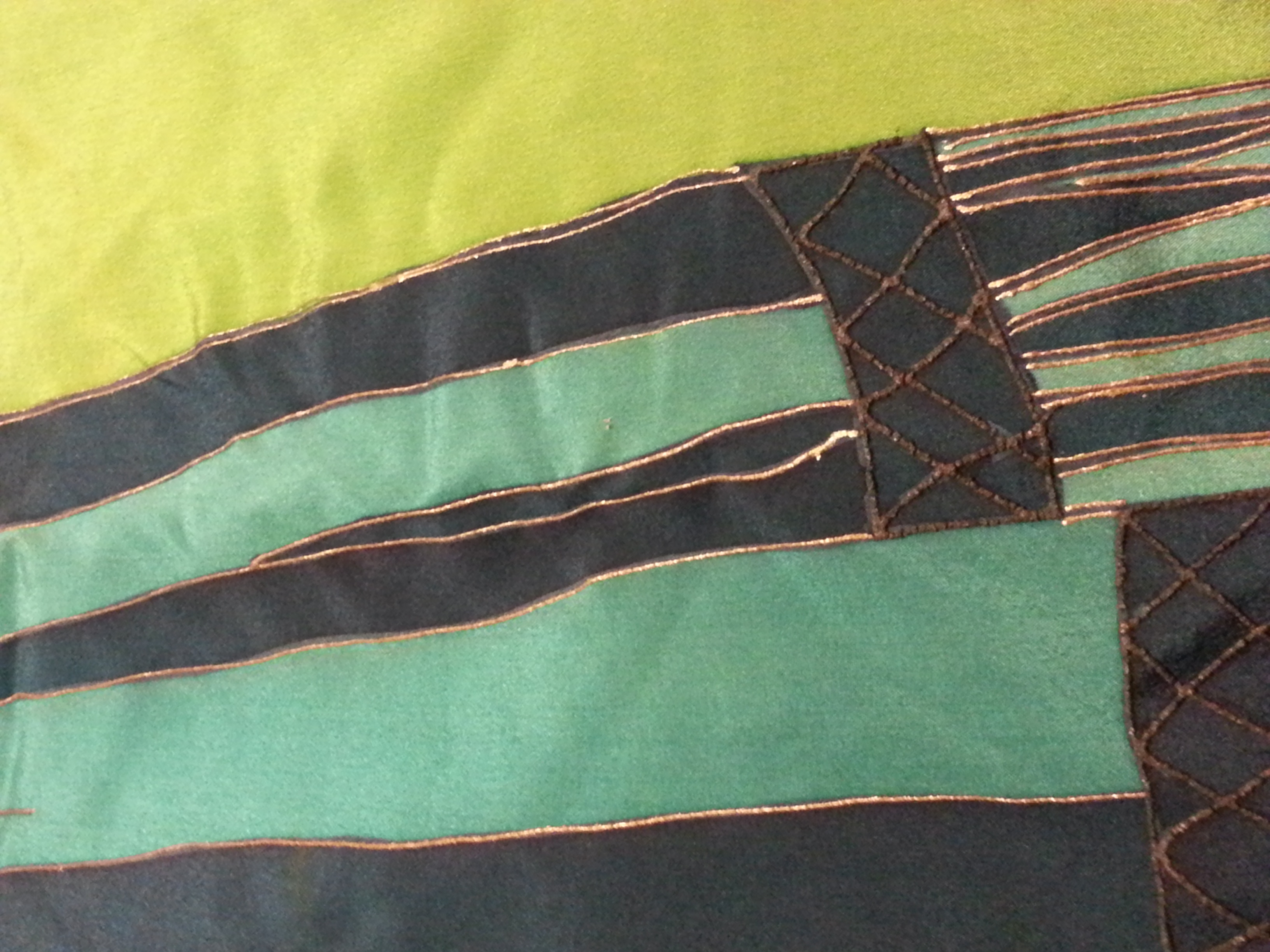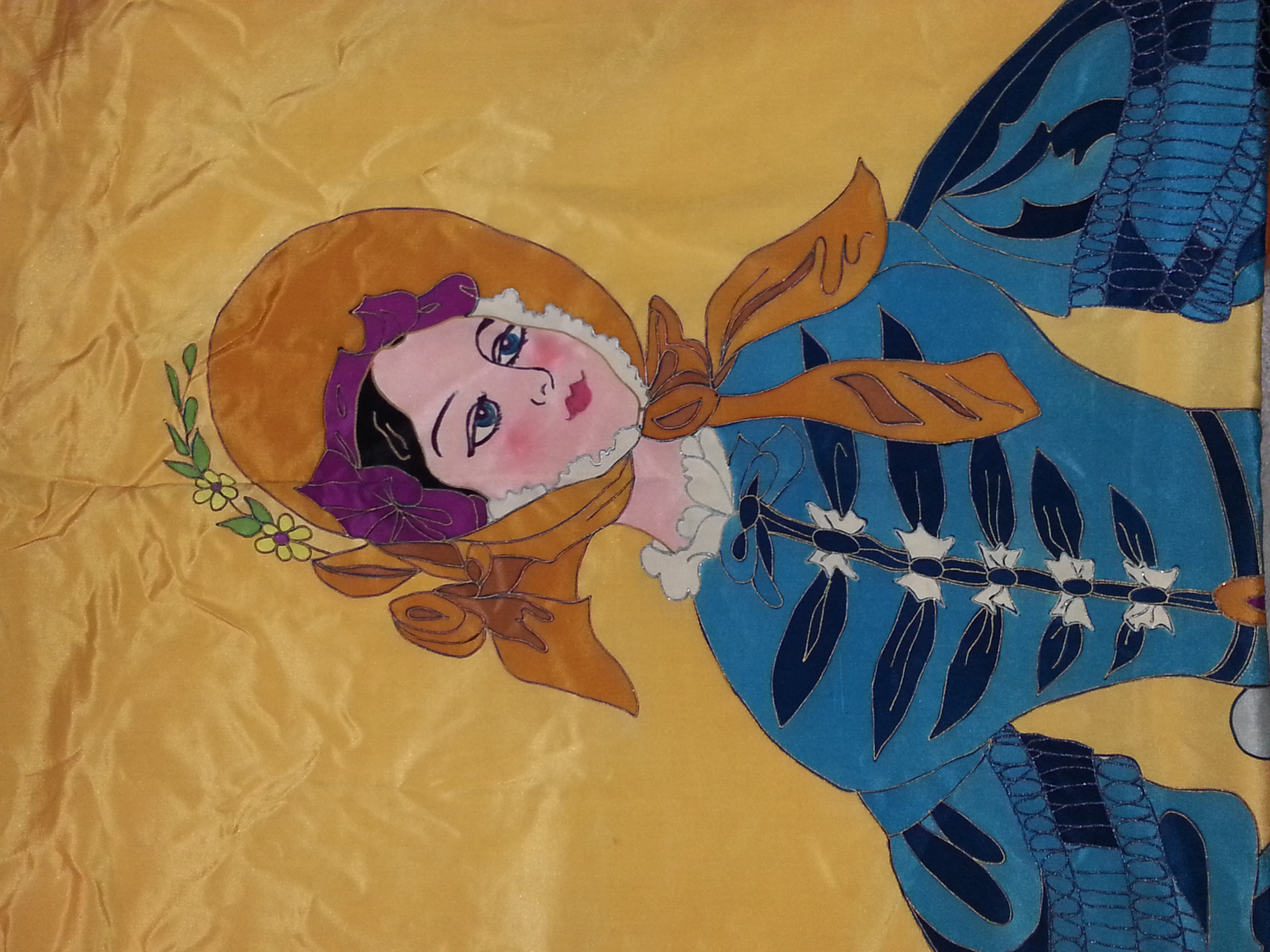 I have been trying to identify this beautiful silk tapestry for a few years now. It's about 9 ft long and 4 ft wide, stamped something like Silbet or Sidtet or Sibtet or Silset Art New York on the back. In impeccable shape for being nearly 200 years old. It has tab tops for hanging. At the bottom of the black velvet frame, it is embroidered 1840. The outlines are traced in some sort of paint that is like "puffy" paint. The face details are painted but it flat.
