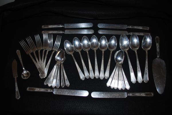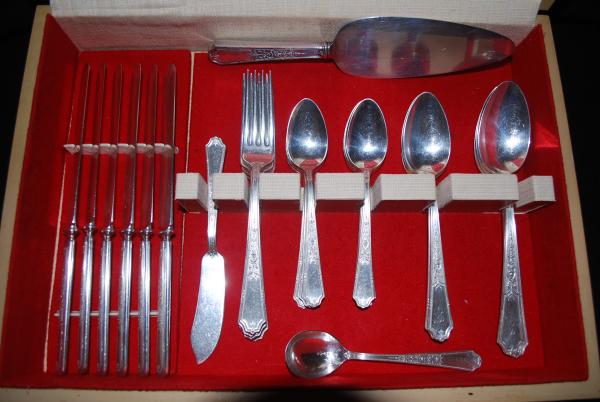 This is 1847 Rogers bros, silver plated 6 serving flatwear set.