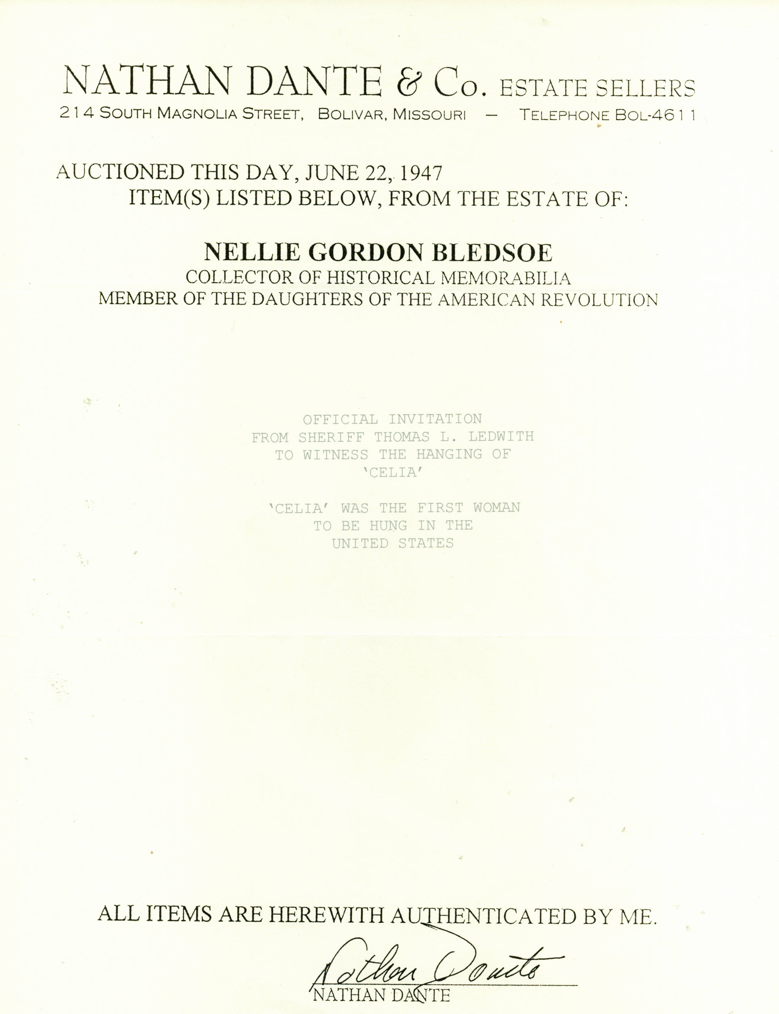 The Original Estate of which this item came from, says "Nellie Gordon Bledsoe, Collector Of Historical Memorabilia, Member Of The Daughters Of The American Revolution".