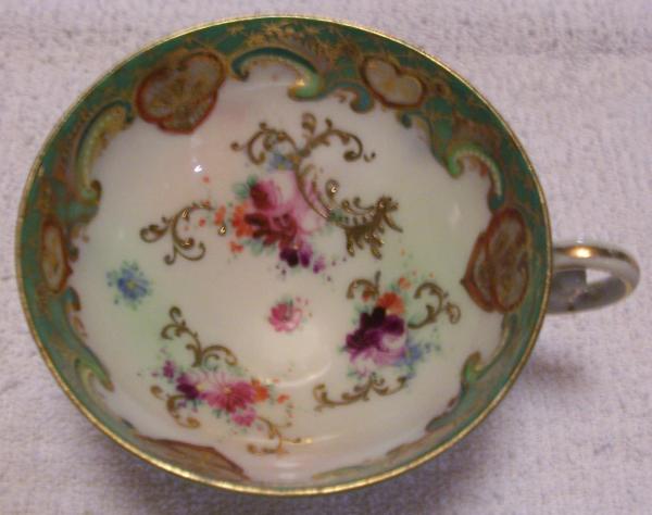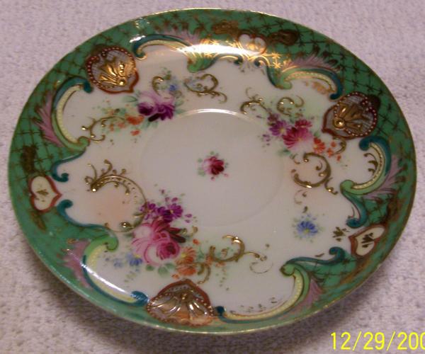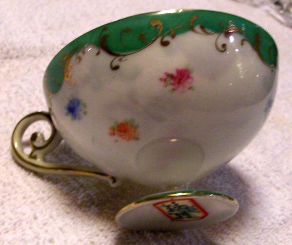 The cup is about 2 1/4" high. The saucer is 5" wide and 3/4" high.