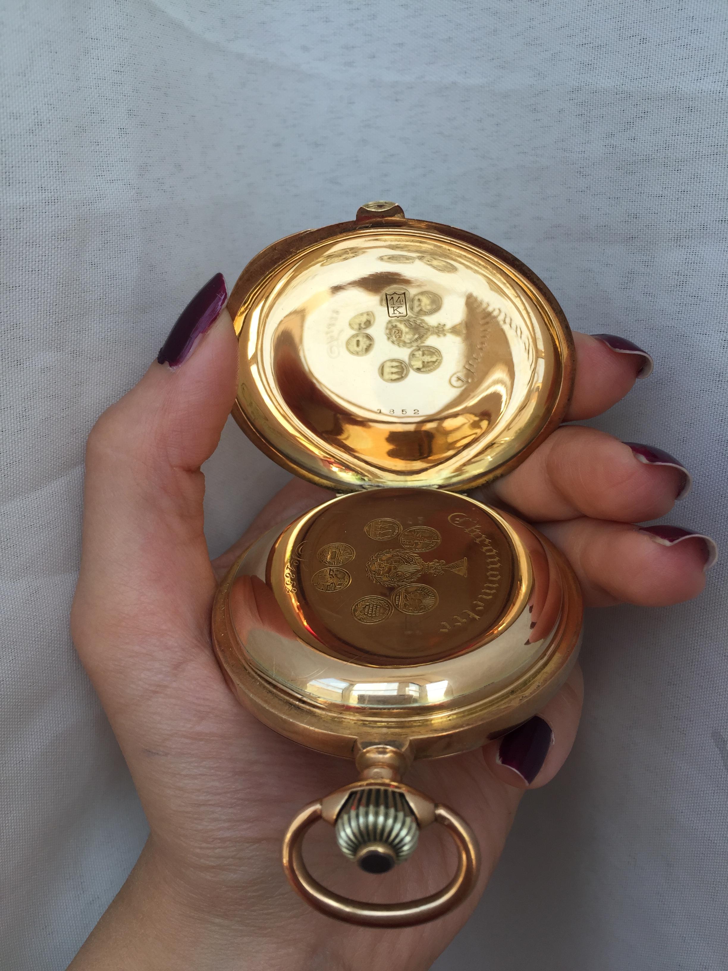 No. 1852 14k Gold Pocket Watch, Unique Edition Made for Mozafaredin Shah (1852-1907) King of Iran.