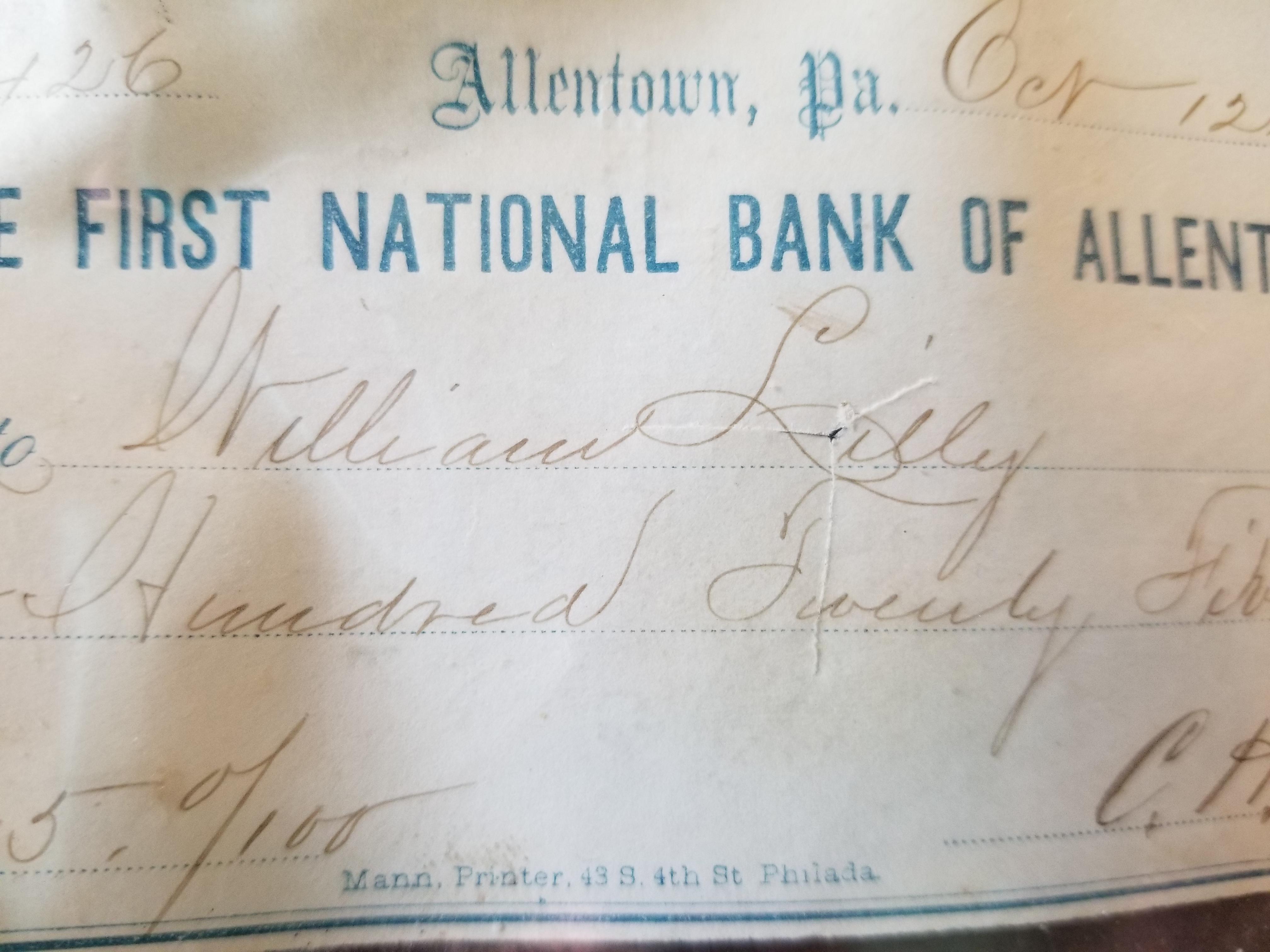 Okay this check was written on Oct, 12th 1864 to William Lilly for 225.00. Its from Allentown PA. The Stamp is a beautiful George Washington stamp. The back also has the pay to the order of stamp at munch chunk bank. Over all this check is in very nice condition minus a pin hole in the very center.