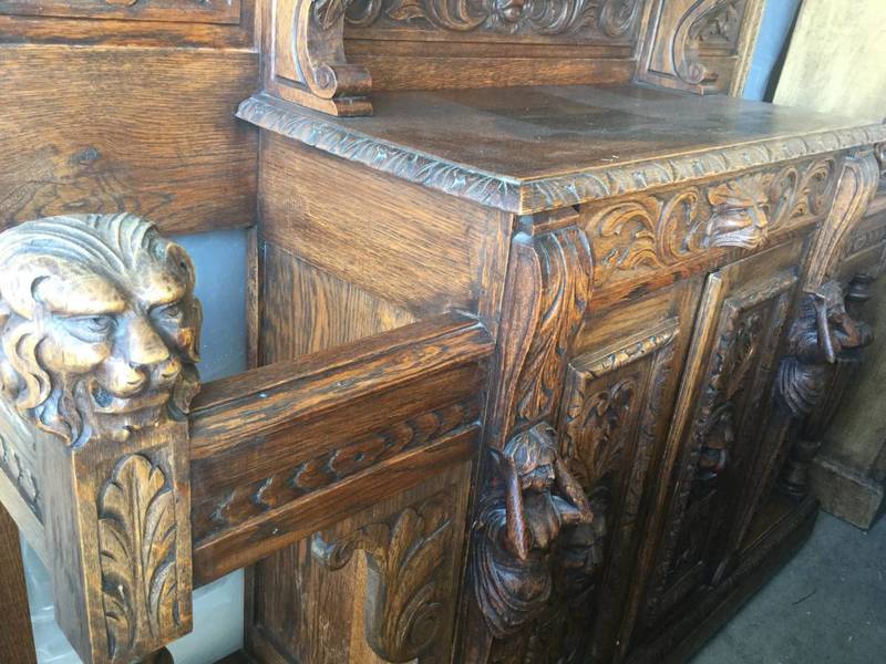 Large 1880 Hall tree Solid Oak 92 inches tall 54 inches wide 17 to 18 inches depth
