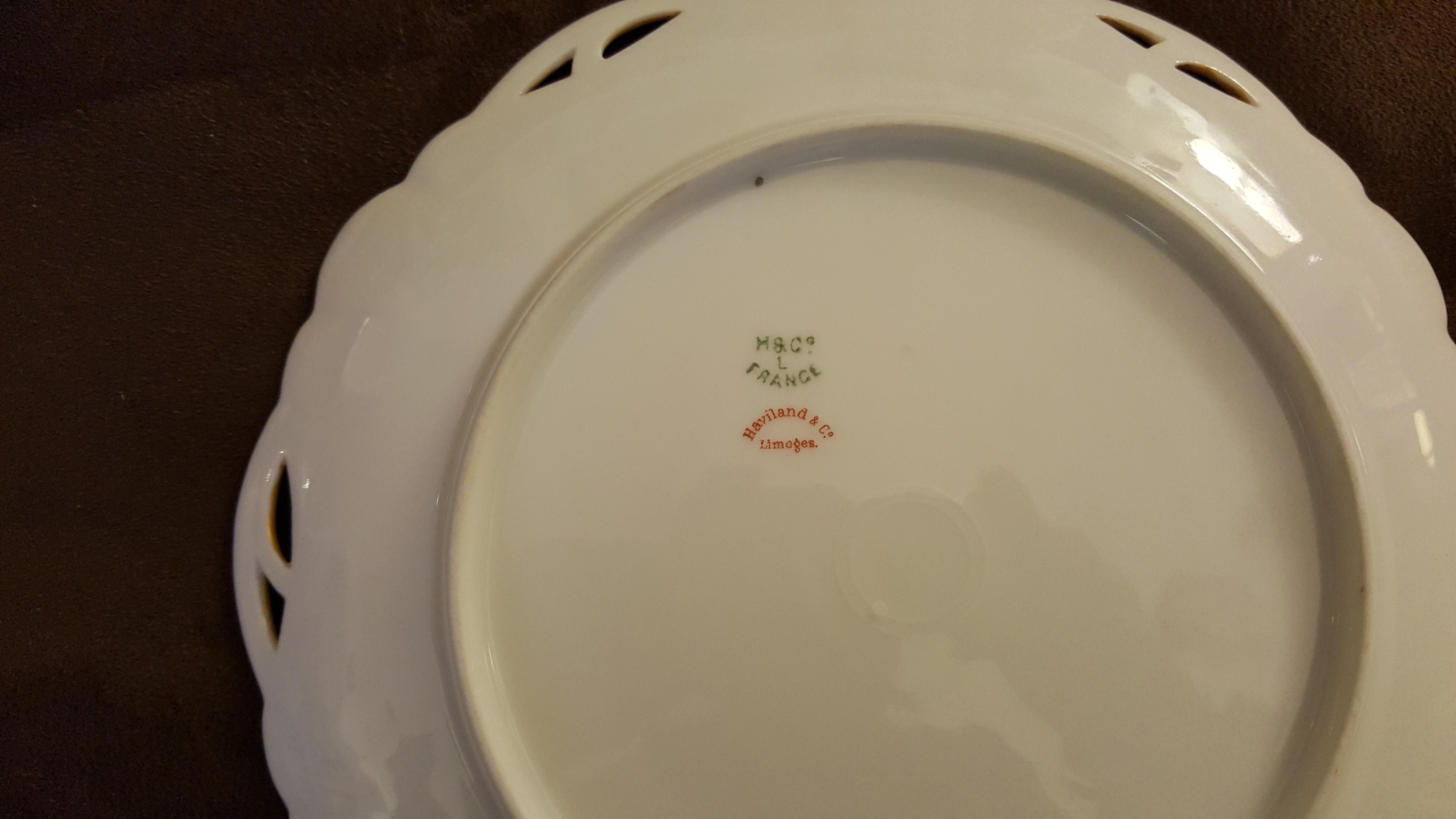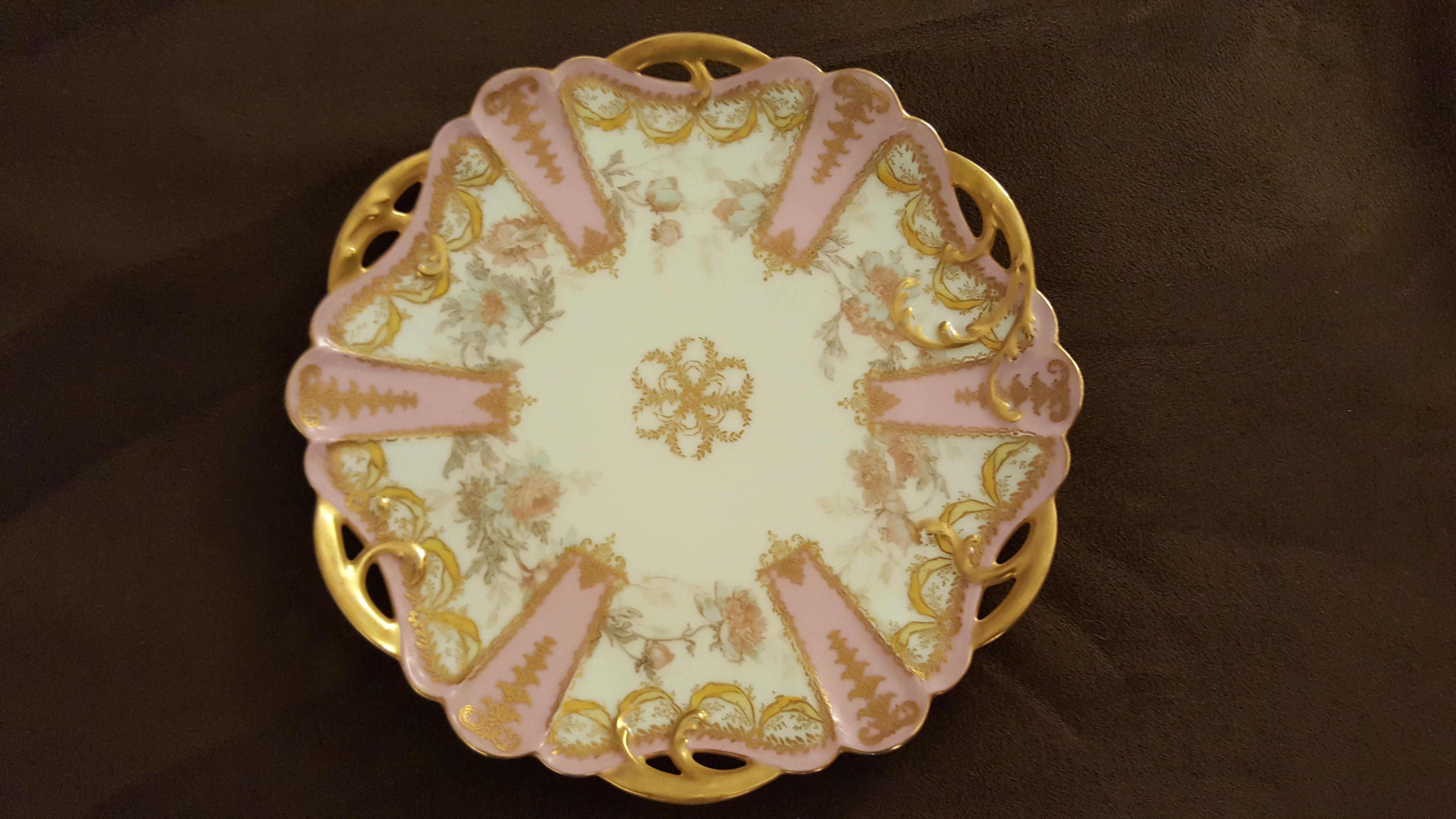 Haviland plate with Gold trim and pink scalloping trim. 8" in diameter with gold rose wreath in middle. Green H mark with C decorative mark. What is it worth?