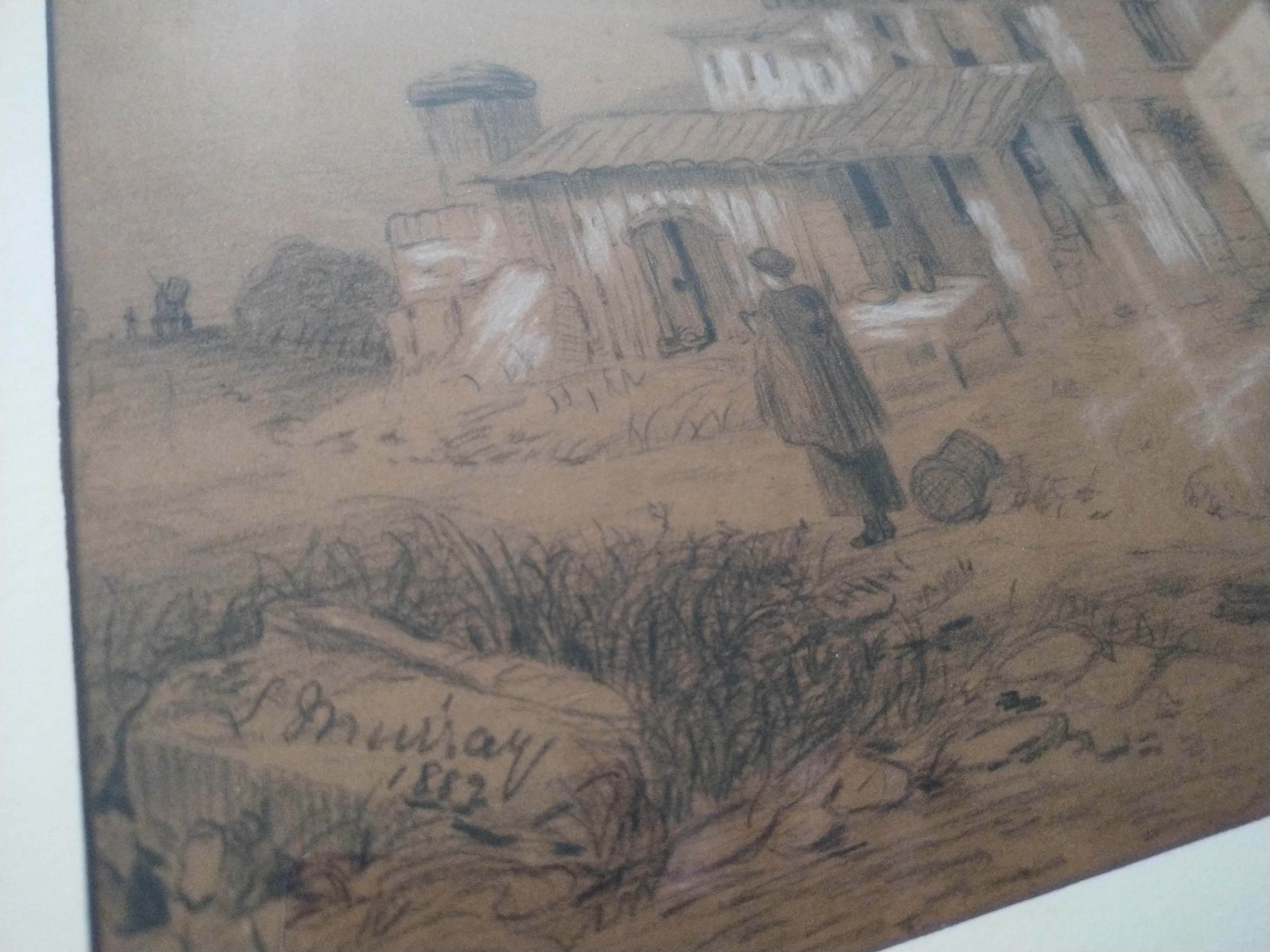 1882 Elizabeth Murray Pen and Charcoal Drawing. Made by Elizabeth Murray. Dating to 1882. Materials: Paper, chalk, pencil, pen. Estimated value: $100 – $275. Condition: Mint/New. The market for 19th-century drawings is currently stable, with moderate demand among collectors.