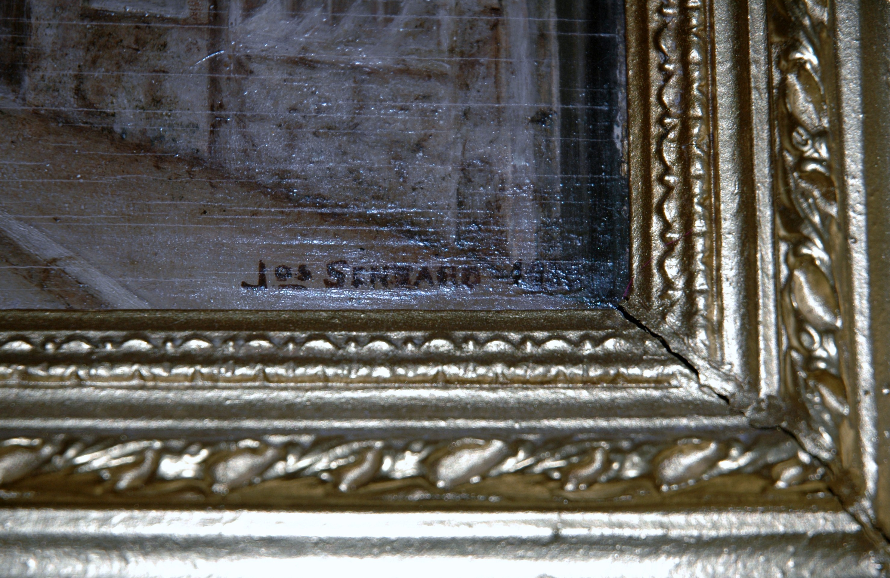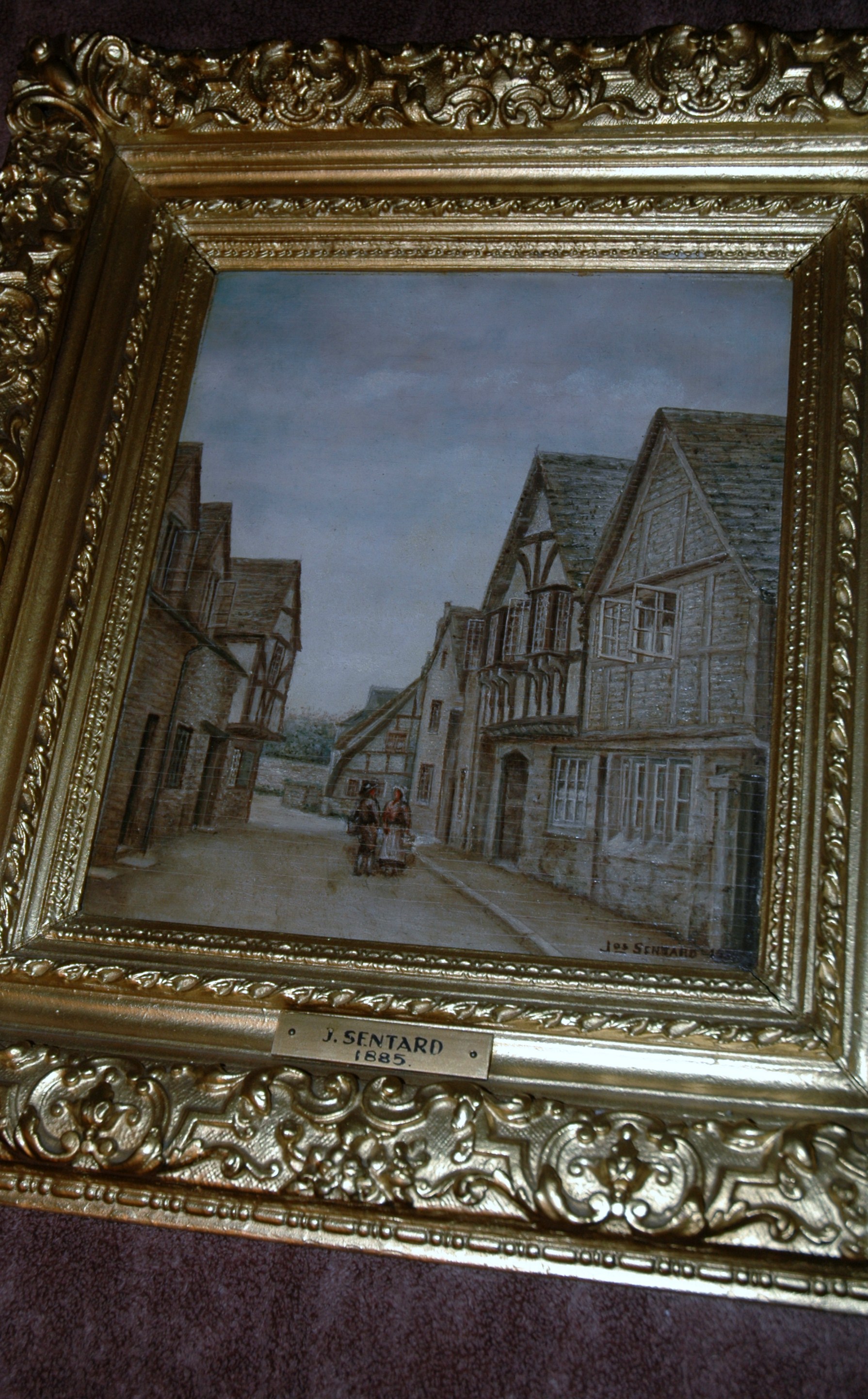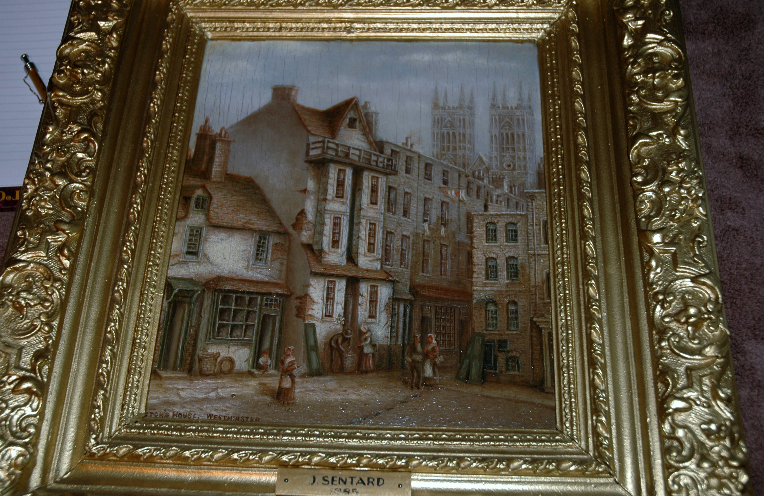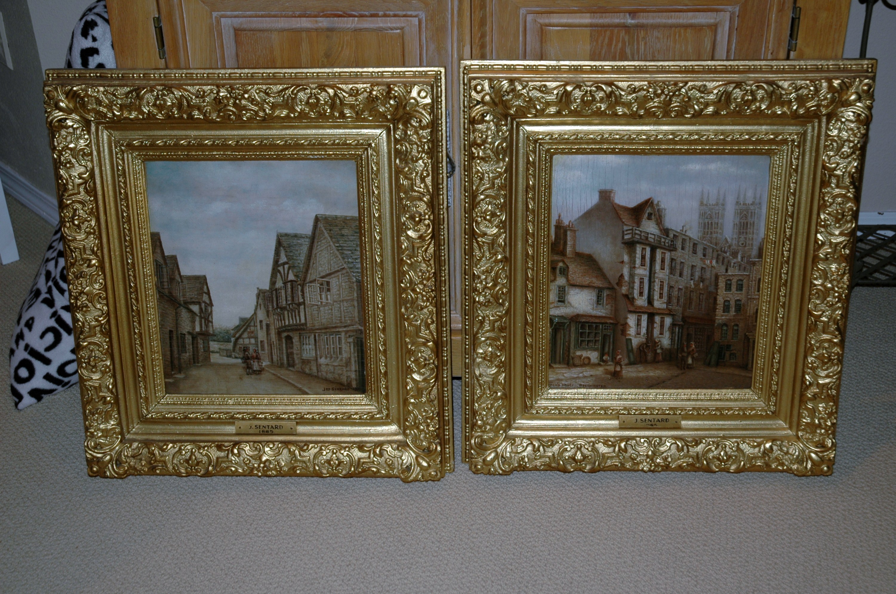 I've had these two 12x16" oils on wood for years. Came from my late parents antique shop. The nameplate says J. Sentard , but I beleive it may be Senyard on the painting. both are heavily framed and I'm unable to disassemble them to see if there is additional info on them. Any ideas on value?