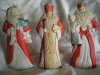 It is sort of like a mini Santa Claus statue standing about 8" high and weighs about 6oz. Looks like its made out of porcelain and on the base the year 1888 is written. It is the only form of writing on the statue. Seems like it is hand painted. Its a caucasian santa with a long white facial hair, the hat is red with green around the base of the head, he is wearing a long red cloak with three gold buttons and red shoes, he has a long staff in the left hand, an apples in his right hand and bag of apples over the right shoulder.