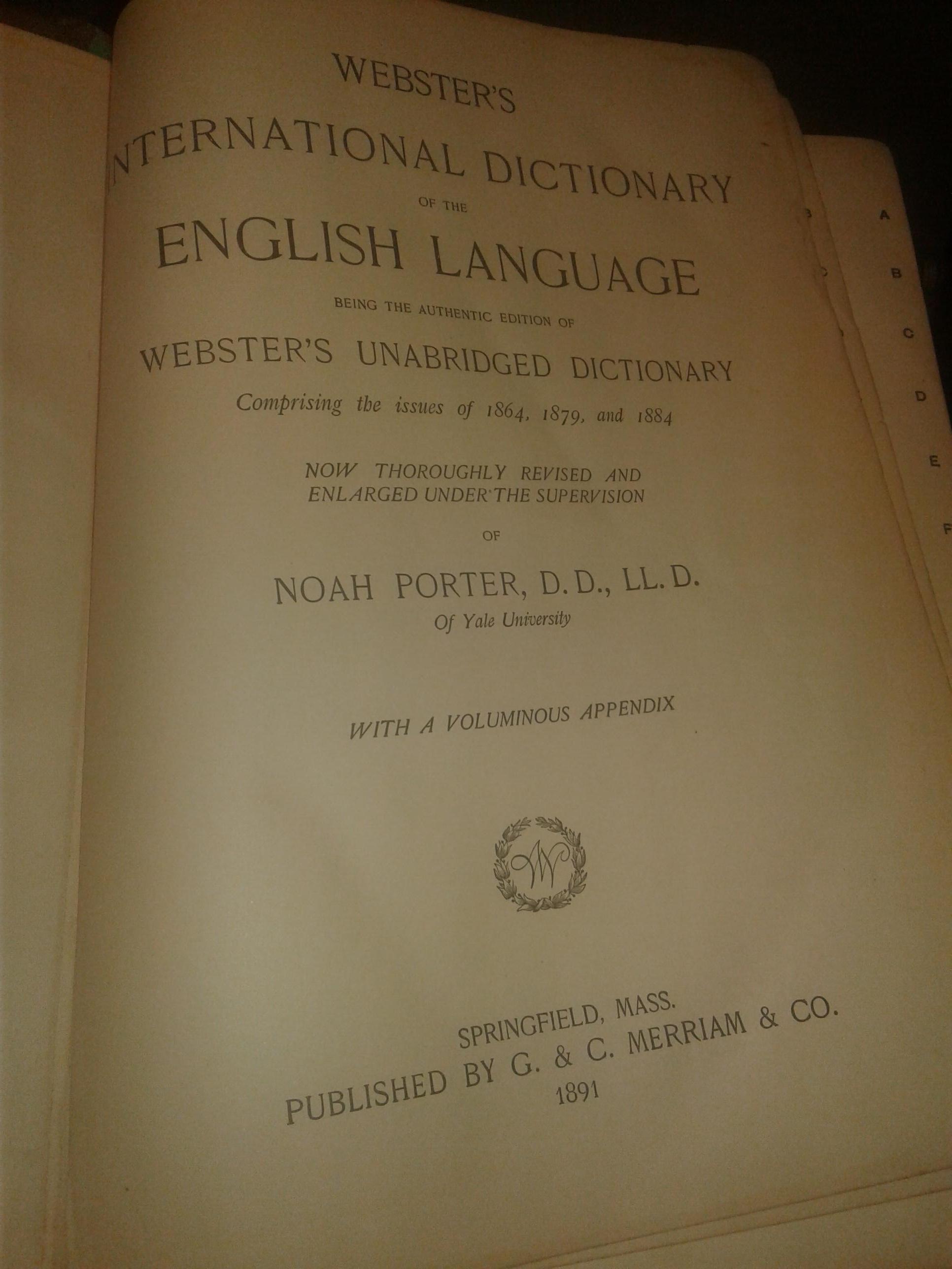 Webster's International dictionary of the English language being the authentic edition of Webster's unabridged dictionary comprising the issues of 1864, 1879, and 1884 now thoroughly revised and enlarged under the supervision of Noah Porter d.d., ll.d. of Yale University With a voluminous appendix Springfield, mass. Punlished by g.& c. Merriam & co.