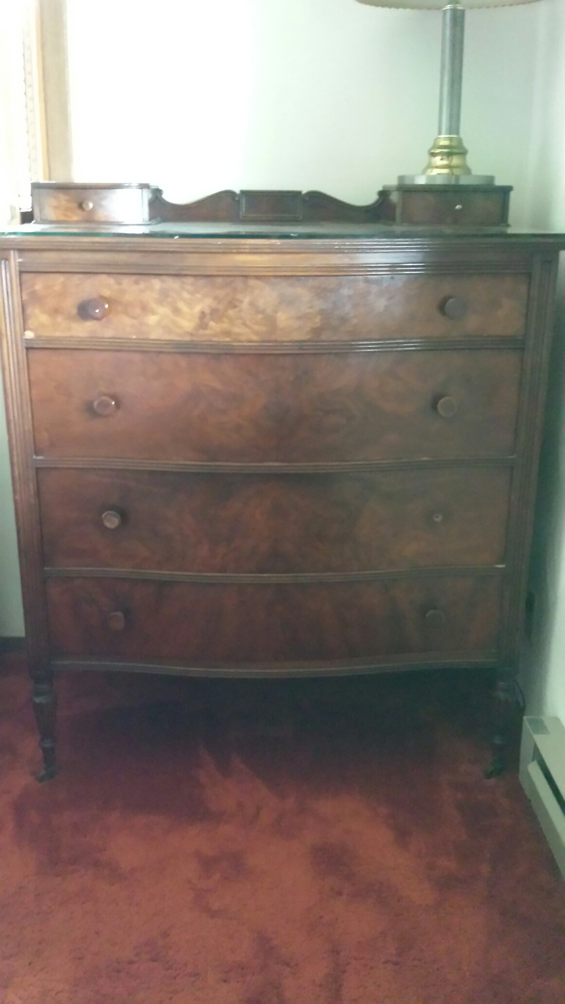 1893 Sligh Full Bedroom Set. Oak? Full Bed, Dresser with Mirror, Chest.