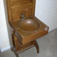 I am asking for help in valuating this rare piece of antique furniture manufactured by the Folding Bath Tub Company, Marshall, Michigan, patented July 14, 1896. According to a manufactures advertisement it is called a Folding Toilet Cabinet with brass spigot and copper top and wash basin.