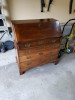 I bought this a few weeks ago at my "honey hole" spot for $30. After examining and researching the dovetails, the lock, the screws and nails they are all pointing to an 18th century piece. I think it's made from pine and made in Virginia or Pennsylvania. Hoping people with more expertise will give info on where it was made, and possible value. Also I'm thinking on finding some salvaged pine that matches up well and to make a new bottom skirt and or feet/legs for the piece. Or would it be better to just leave it as it is for better resale value?