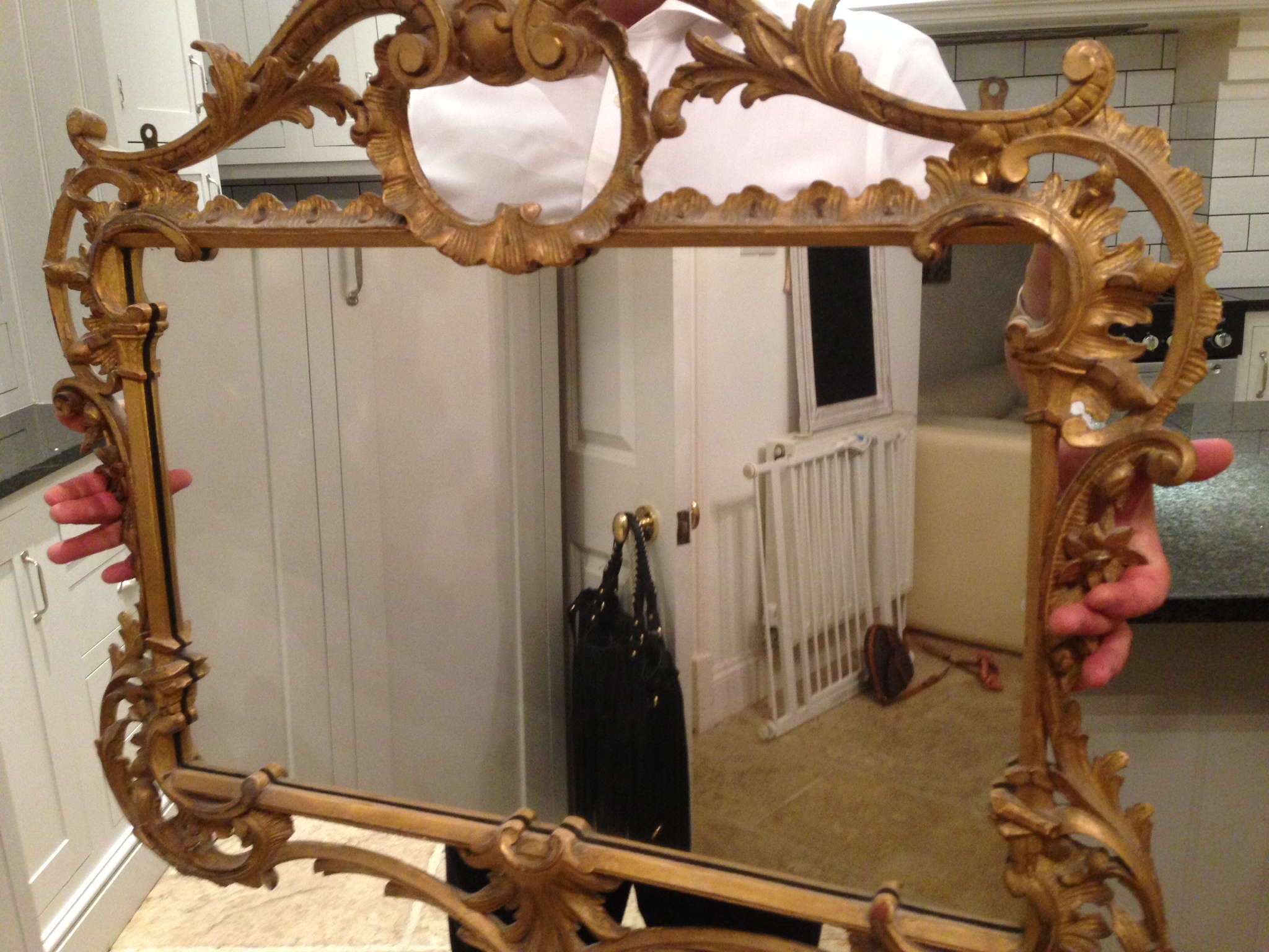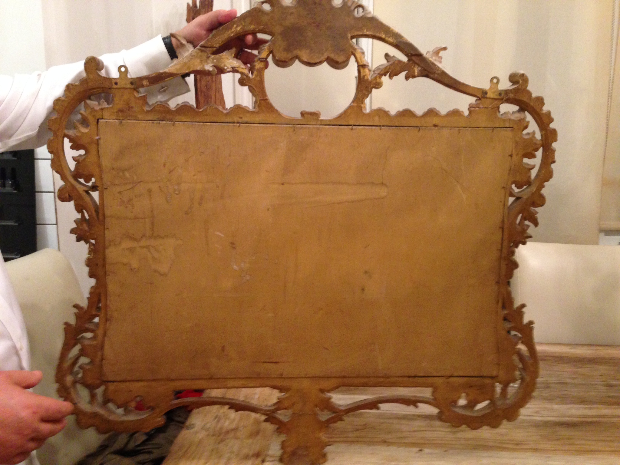 I have very little information on the mirror, other than it was purchased from an Estate being broken up in England, sometime in the 1940-50's. The frame has been professionally restored due to some damage to the intricate carvings, I do recall the restorer mentioning that it was around the 1700's and it obtains the original plate glass.