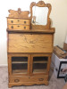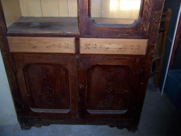 This belonged to my Grandmother and I am 49. I made the mistake of atempting to finish it. I started on the drawers, and brought it down to bare wood. Other than that it is all original. Has some scrapes and scratches and the vent screens are damaged. Have all original hardware.
