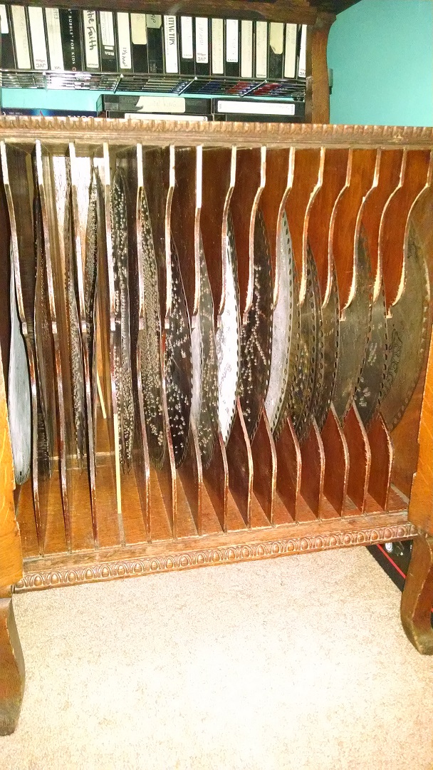 Early 1900s Regina music box and stand originally bought at the Chicago Worlds Fair by my Grandparents. Hand crank has a crack in it, start/stop lever is missing. Sound is reasonably good. Lock key is missing. Has 20 discs. Still plays.