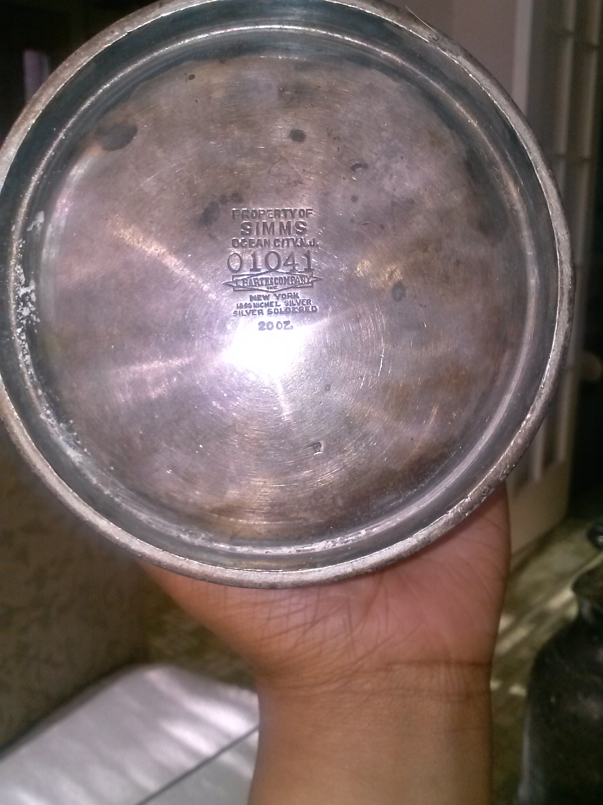 It is a sugar holder, said to be from the early 1900's. It is from Ocean City, N.J, manufactured by L. Barth and Company Inc. It is 18% Nickel Silver and it is silver soldered.