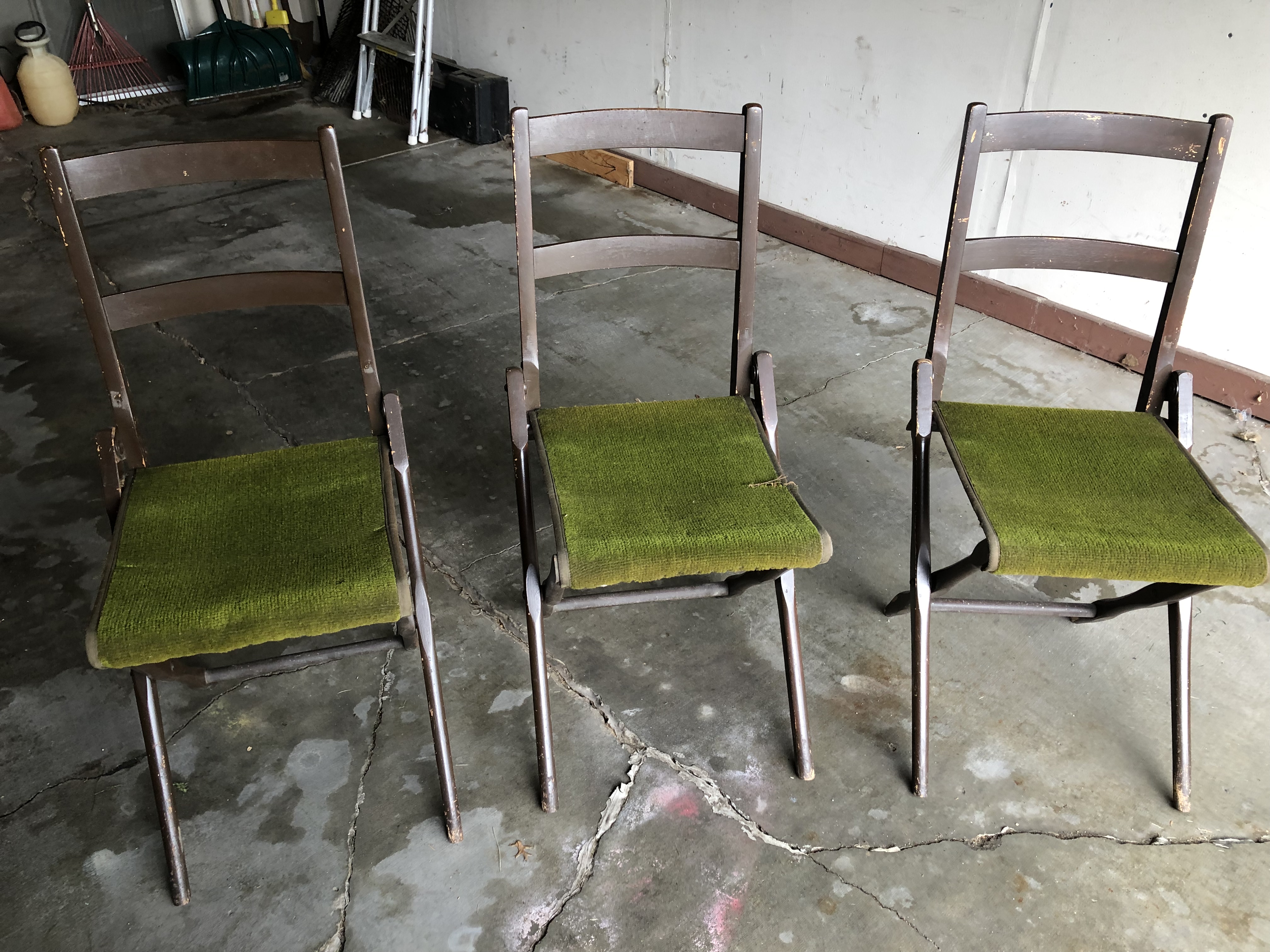 There are some paint chips. And one chair had a tear on the seat . Everything is original. Original carpet seat.