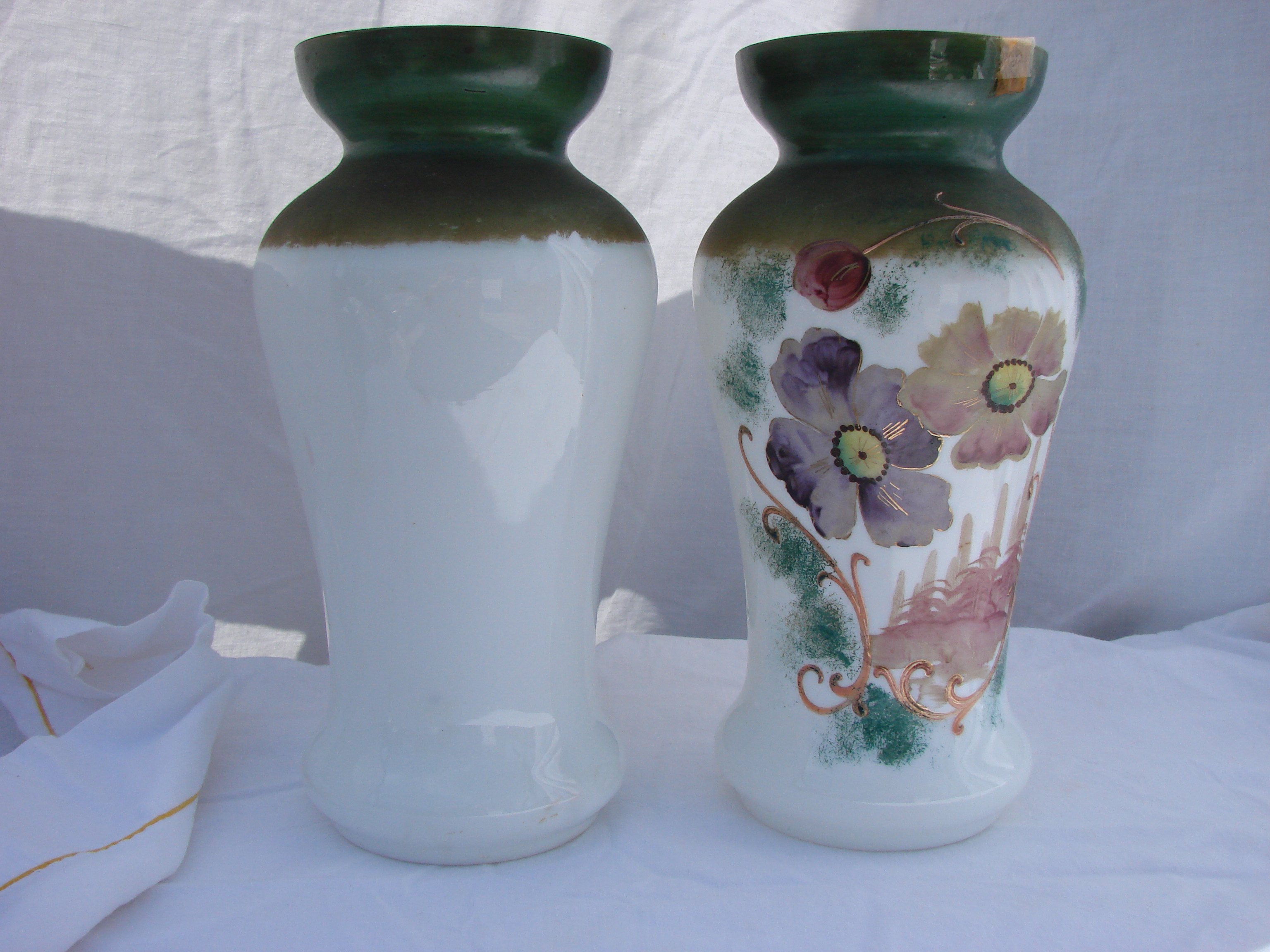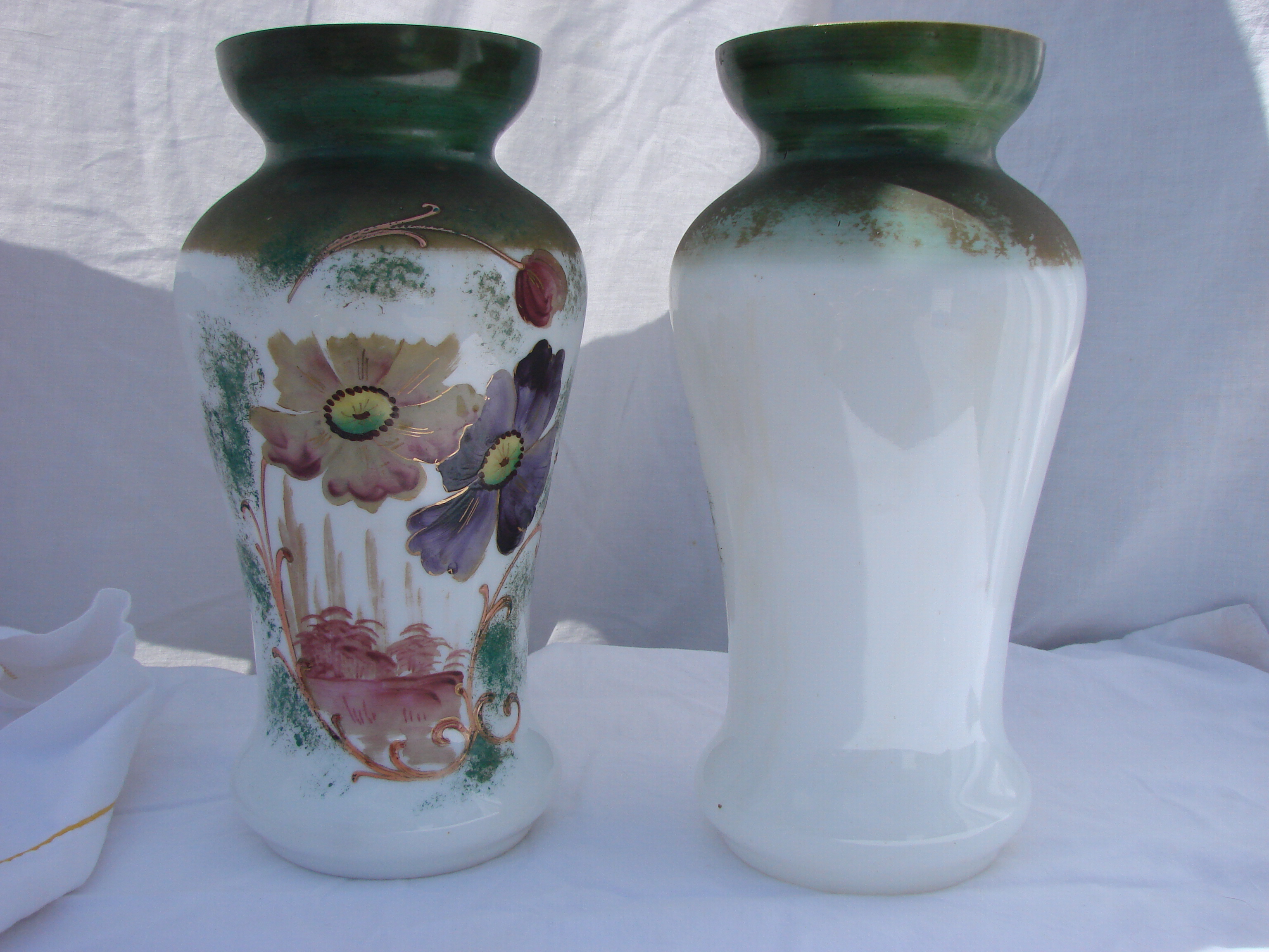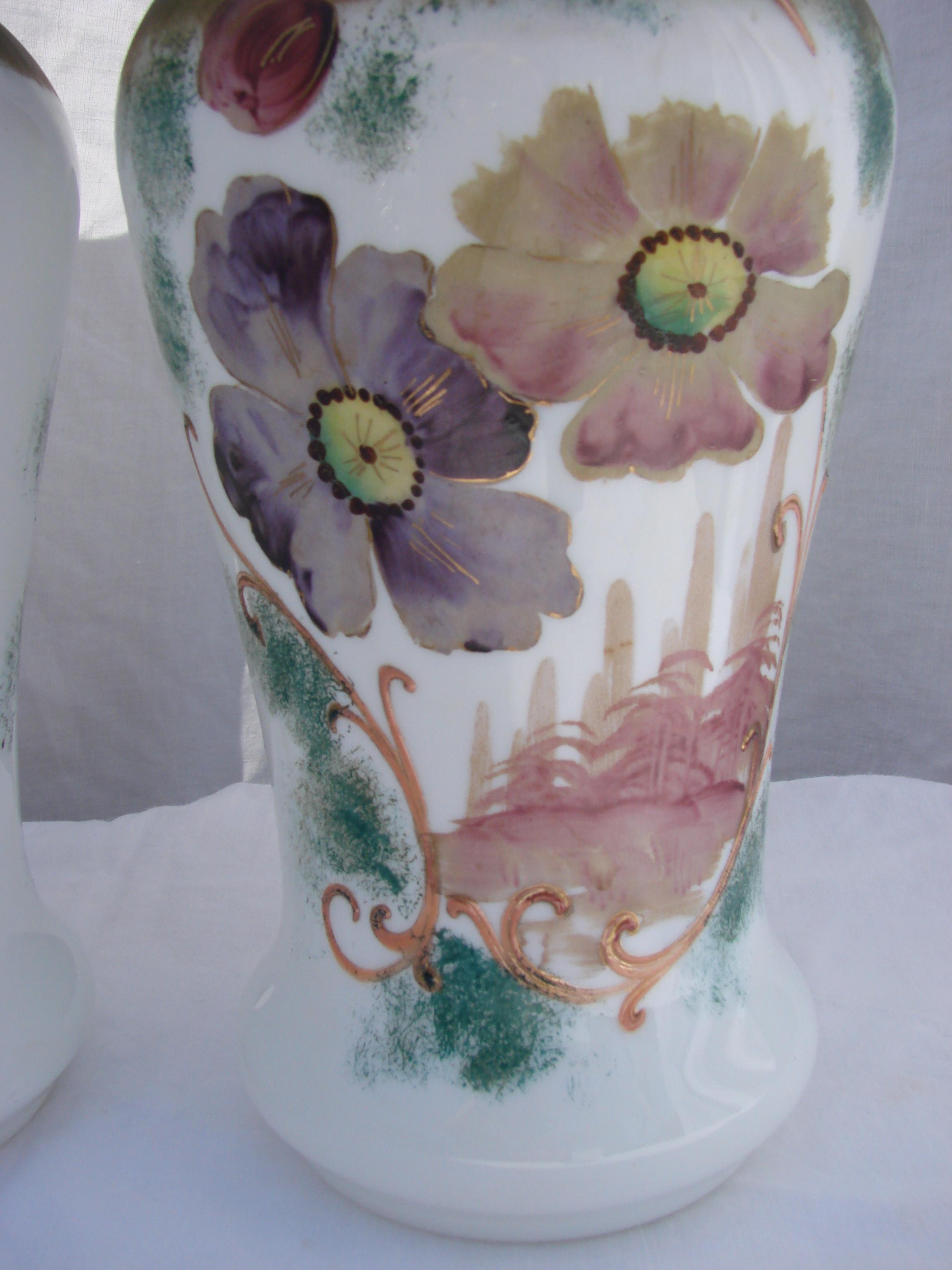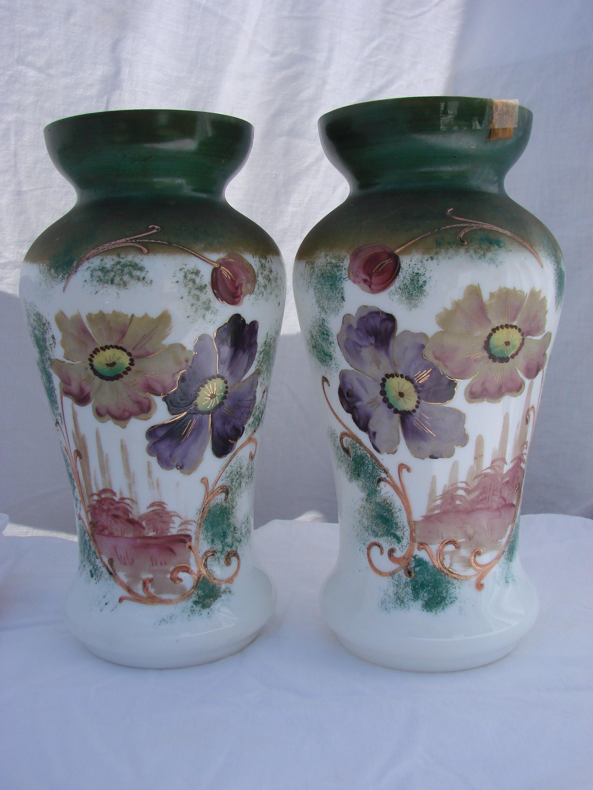 A pair of hand painted vases