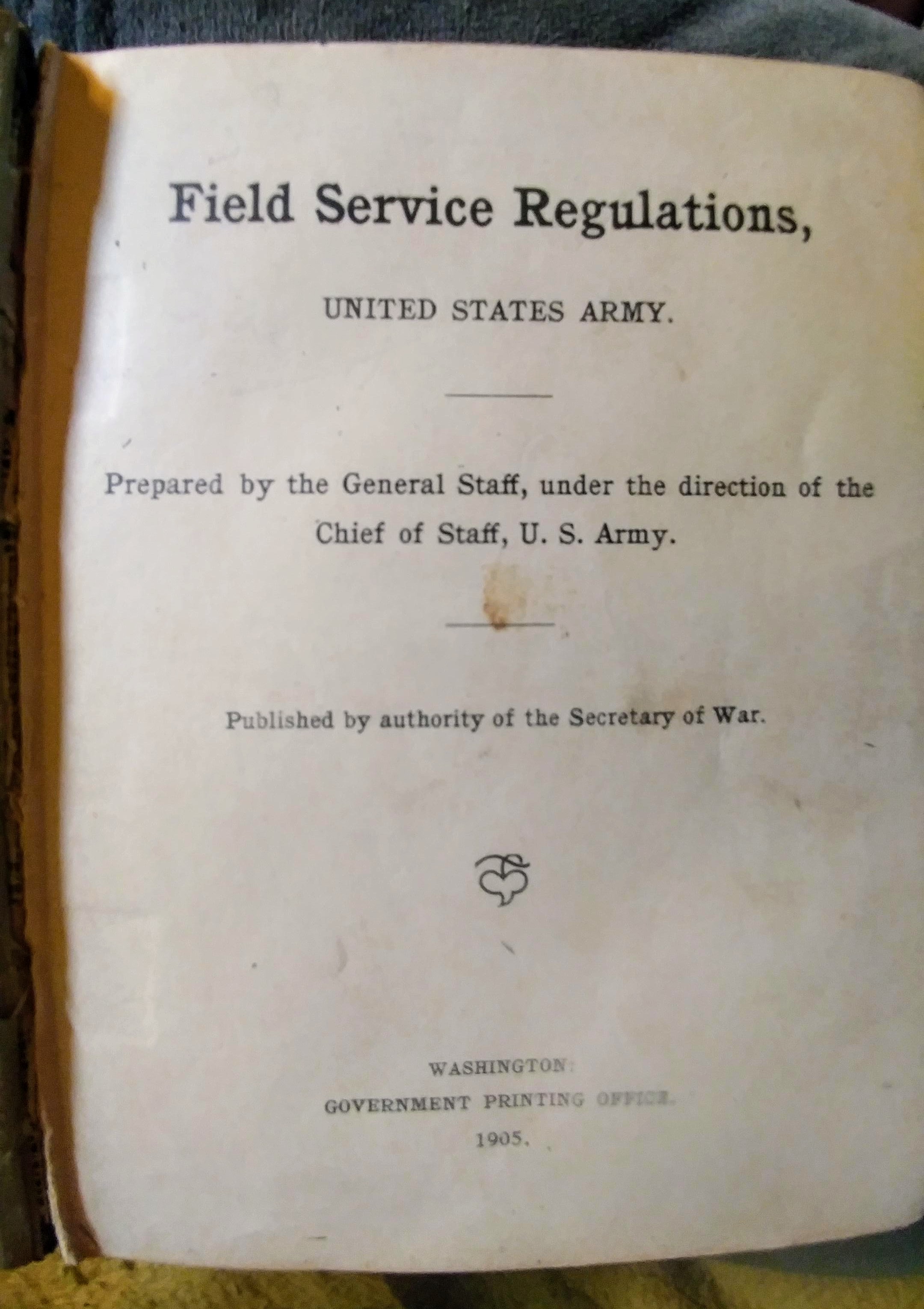 As far as I can tell, this is the original 1905 print of the very first official, "Field Regulations Manual", for the United States Army.