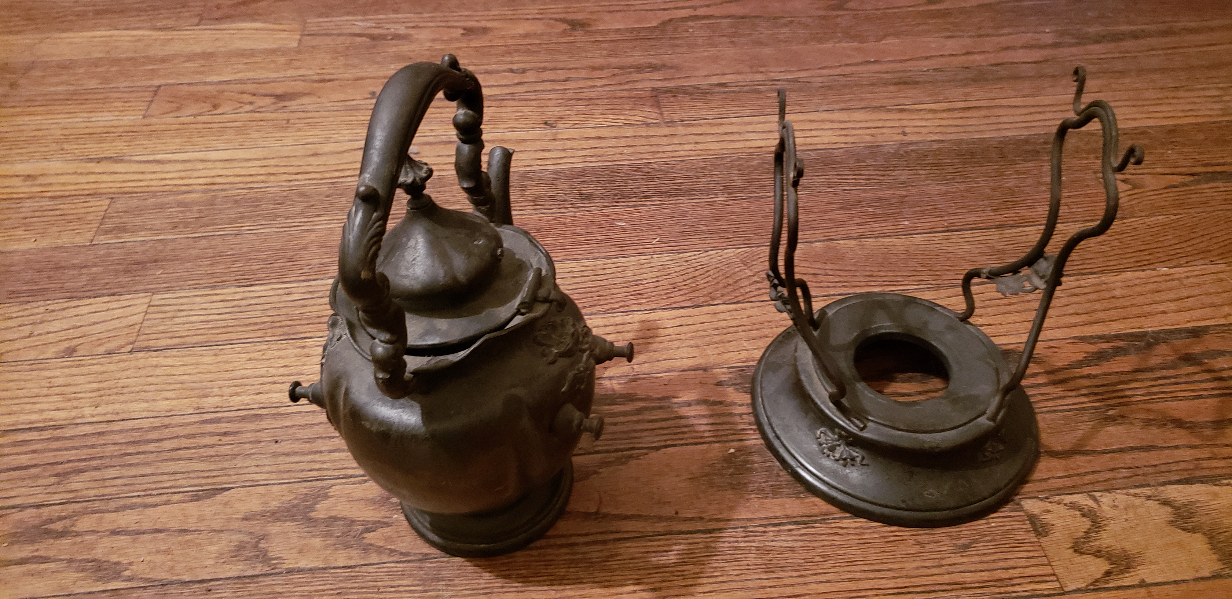 This is a 1906 silver t pot quadruple plate! It has a stand and can be heated with a candle. Not very familiar with this product but it is very interesting.