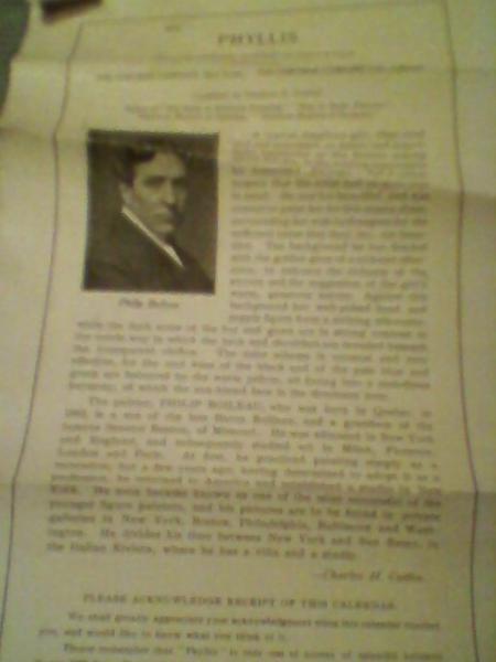 1908 Philip Bouleau calender. I have had the calender for a few years and it was bought for me at a garage sale.