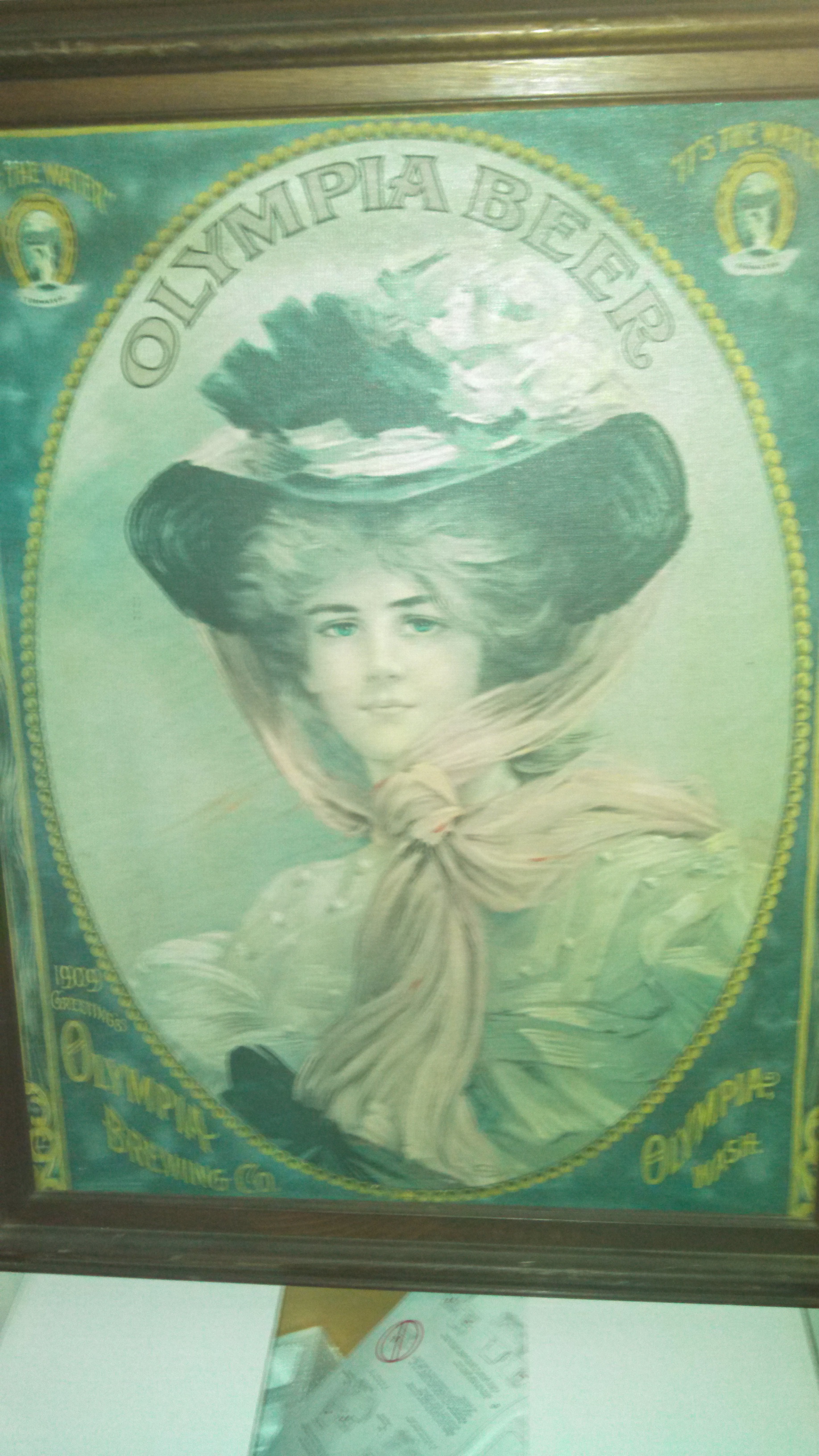 We recently purchased this item at a local garage sale. I purchased it because I liked it but, after looking at it, my wife believes that it is an actual painting instead of a litho like I thought. The colors are extremely faded compared to the examples we found online but we all know there are alot of ways to falsely age items. Upon doing some research, my wife learned that similar items were part of an advertising campaign for Olympia Beer in 1908-1910 prior to prohibition. There was an edition of litho reprints done in the 70's also. My piece appears to be on canvas, painted in oil, attached to a wooden canvas square, and framed in a wooden frame. We have searched the painting for some type of identifying feature but have not been able to find anything such as a serial number or artist's signature. We would appreciate any information you could offer as well as an approximate value if available.