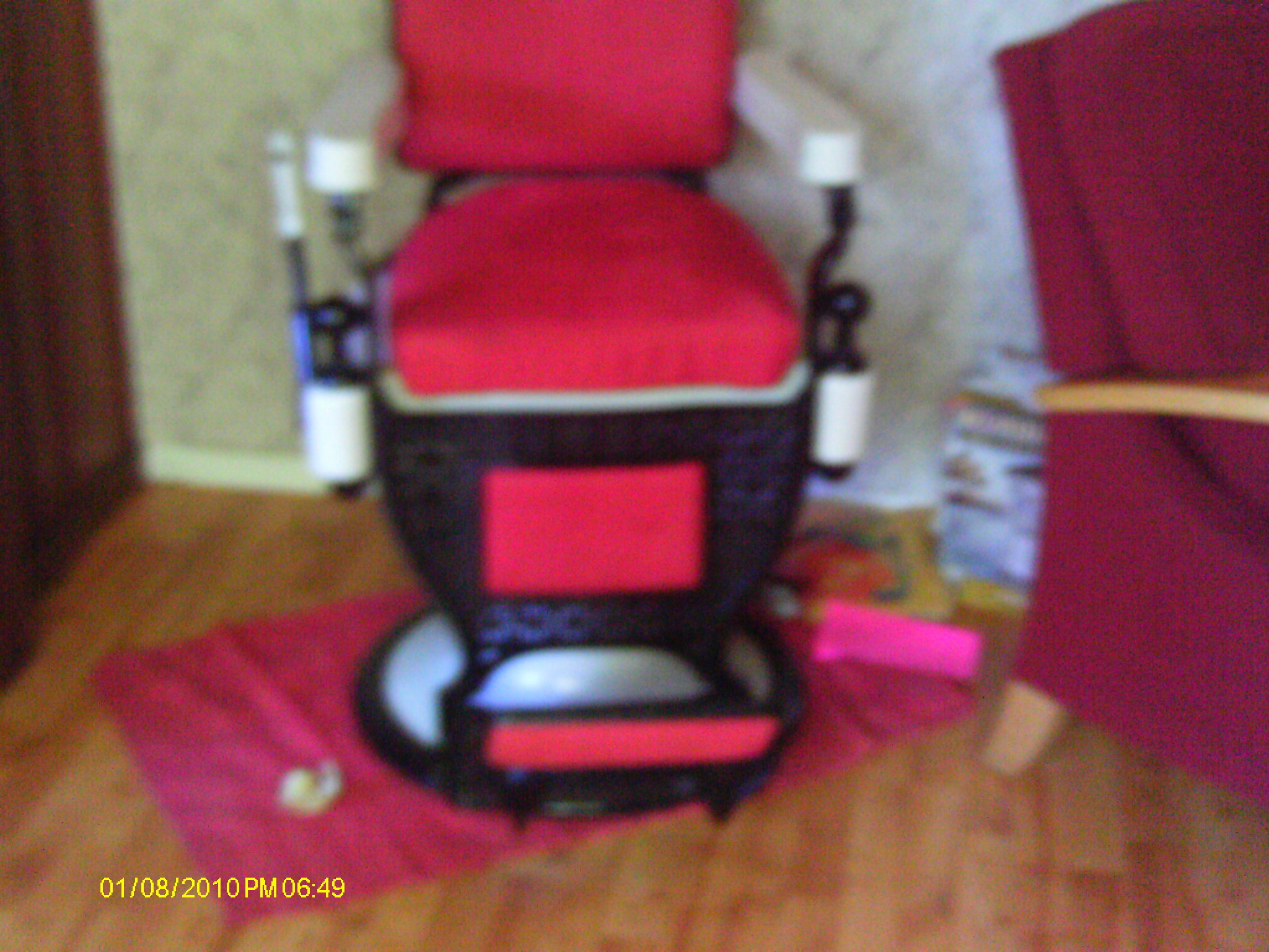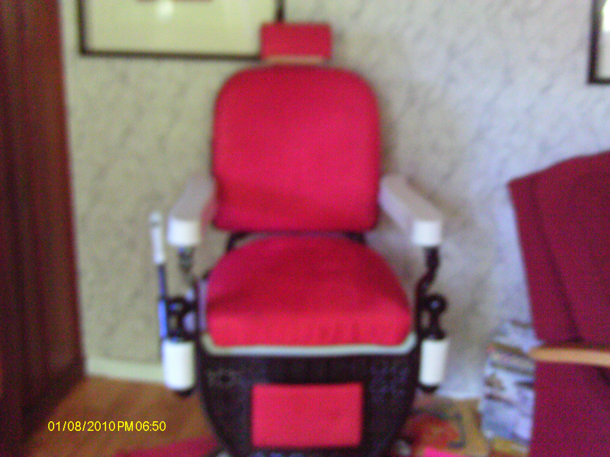 1909 theo koch barber chair in great condition all original leather under upholstery,stamped date of oct 5th 1909.curious to see what it is worth since i have seeen them go for as much as 10,000. still in working condition and has original shaving belt and paper in headrest.